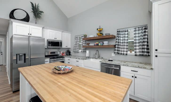 Because the kitchen is the focal point of a home, we give it special attention. The owner of this home created its wood floors from trees cleared to make room for the house. That’s a special kind of love you truly feel when you enter the home.