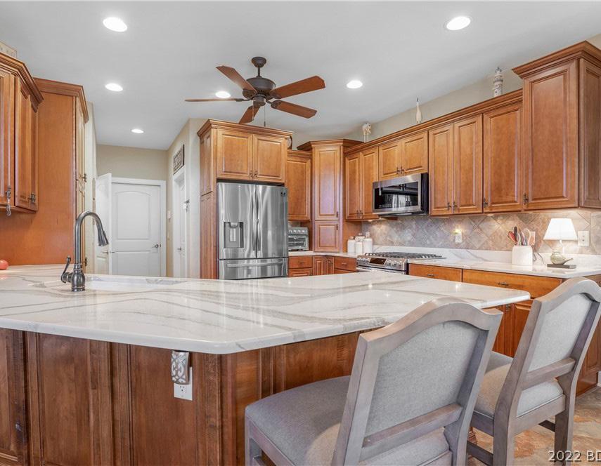 If it weren’t for work, the current family wouldn’t leave this home! From the curb appeal to the custom stone fireplace out back, this home is stunning. This Clement Construction home doesn't miss a beat. The arched mahogany double door is just the beginning. Custom tri-ceilings & arched doorways compliment the formal dining room. Find stainless steel appliances, granite countertops, center island with seating, planning desk, & custom cabinetry w/rope moldings & soft-close drawers in the kitchen. The oversized 3 car garage & large laundry/ mud rm are found off the kitchen. The primary bedroom has a bay window, an en suite, & walk-in closet with custom organizers. Take the elegant staircase up to FOUR additional bedrooms, an enormous rec/bonus room & 2 more full bathrooms, all with 9ft ceilings. You’re not done yet! The basement... 9' ceilings with recessed lighting, gas fireplace, full wet-bar with kegerator & colored LED lights, theatre rm, living rm, & full bath. Enjoy an outdoor fire in luxury! Video Tour: https://vimeo.com/808042894