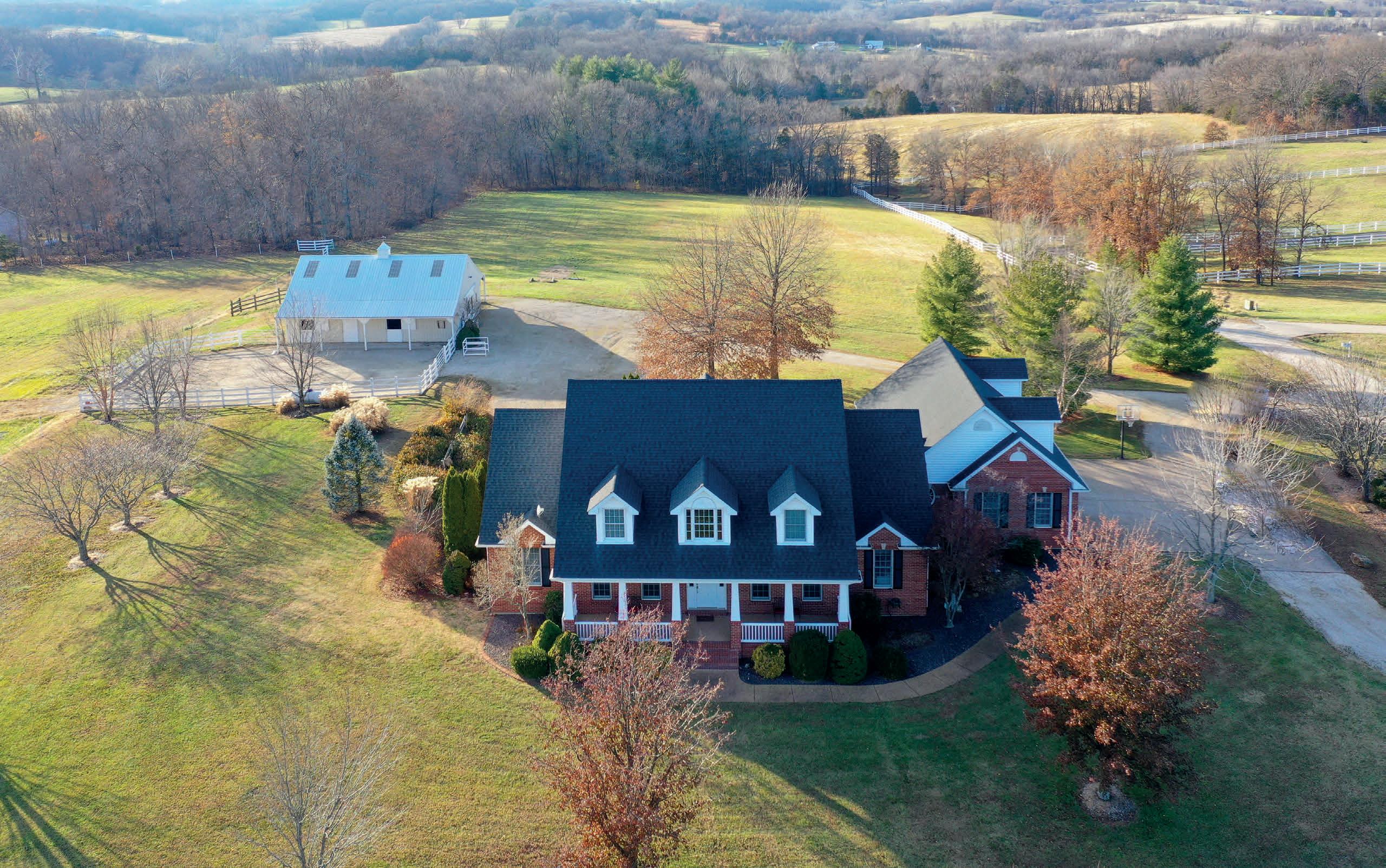 Private oasis on 10 beautiful acres, in a convenient location, surrounding a spacious 4+ bed/4 bath house. Timeless finishes grace the home including the gourmet kitchen featuring maple cabinetry, solid surface/granite countertops and hickory floors. Right off the kitchen you’ll find a cozy, knotty pine-covered porch with a hot tub while the sprawling living room centers on a dramatic wall of windows. Enjoy the owner’s suite that boasts double sinks, oversized whirlpool tub and separate steam shower. Entertaining here is easy from the whole home stereo system and the game room complete with a full wet bar, to the expansive patio and the oversized in-ground pool sporting a power retractable cover. The attached 3-car garage is finished and heated and the pond has Blue Gill Fish! Included on the property is an amazing 102X58 5,916 sqft outbuilding with a finished loft, ¾ bathroom, plumbing for a full kitchen, and heated floors.