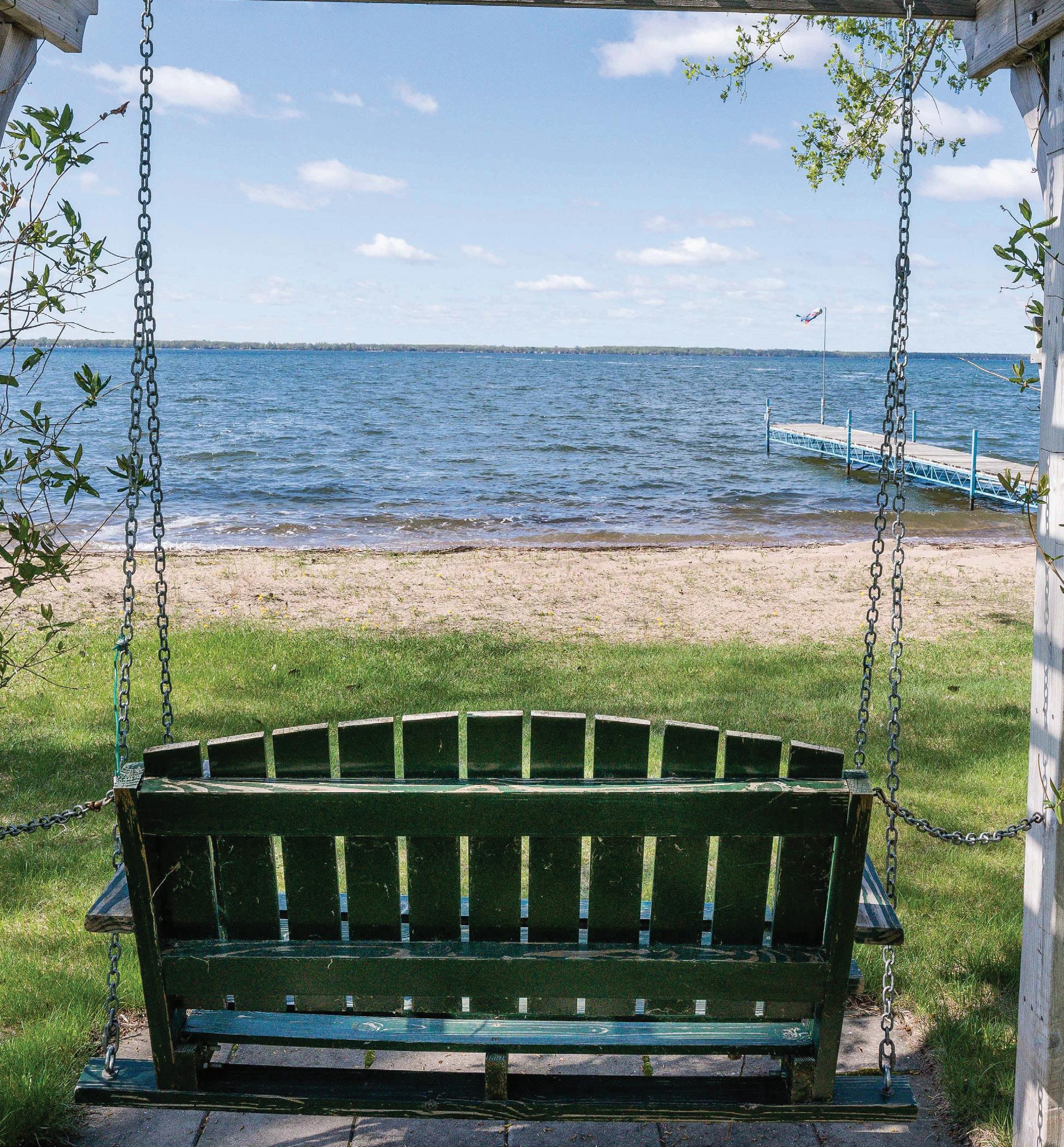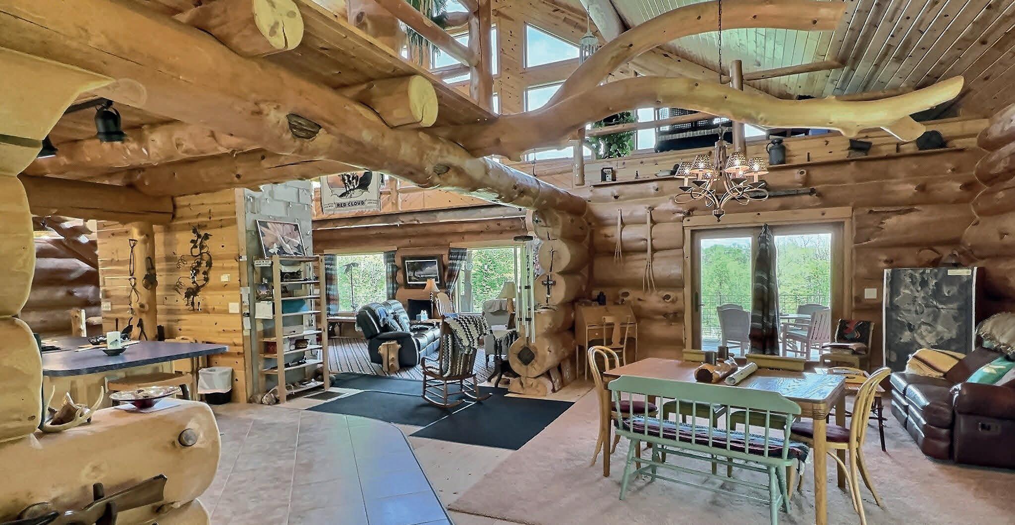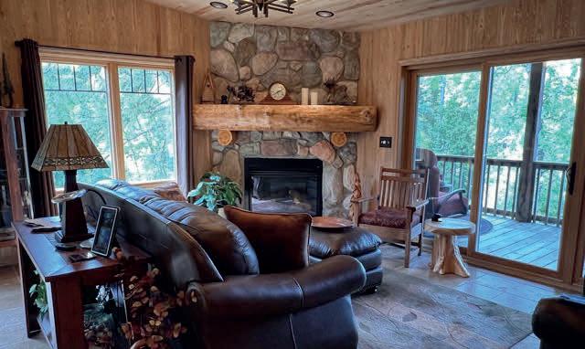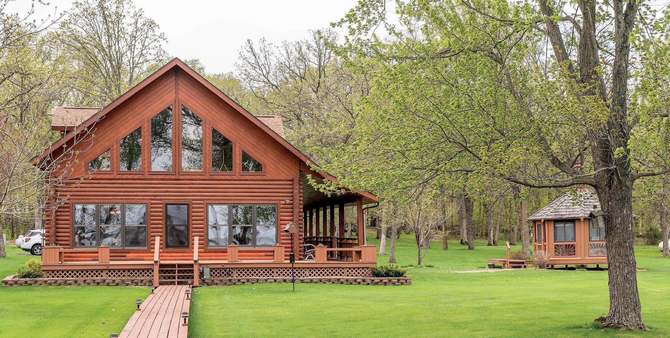 Absolutely breathtaking! This exquisite year-round home is a true masterpiece. With 3 BR & 3 BA, it offers spacious living in a serene environment. Attention to detail is evident in every corner, showcasing native tongue and groove paneling that exudes warmth and character. Kitchen boasts granite counters, while the travertine and hardwood flooring add a touch of luxury. Solid hickory doors further enhance the craftsmanship throughout the space. The quarter-sawn oak cabinets are both functional and visually stunning, providing ample storage space. A piece of history graces the living area with a mantel crafted from a 150-year-old Elm tree, adding a unique focal point to the room. A charming guest cabin/bedroom, private sauna complete with an additional bedroom for a total of 5 BR! 150’ of SAND BEACH, garage, two docks with boat lift completes this package. Includes most furniture. This property has it all!!