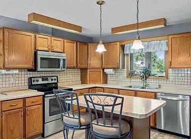 Wonderful 3+ bedroom 3 bath spacious Split-Foyer in great location near Prairie Ridge Golf course. Large open kitchen, dinette and living room area. Center Island with many cupboards and appliances to stay. Lazy Susan, pantry and recycling/garbage cabinet. Master bedroom suite with 34 bathroom. Large family room with gas fireplace. Lots of storage. Many updates including Furnace and Central air in 2020, Roof in 2016, water heater 2010 and new garage door in 2012. Flooring in kitchen, dinette, entryway and laundry room new in 2016, . Exterior is vinyl siding and brick. 2 car attached garage, storage shed, deck and patio.