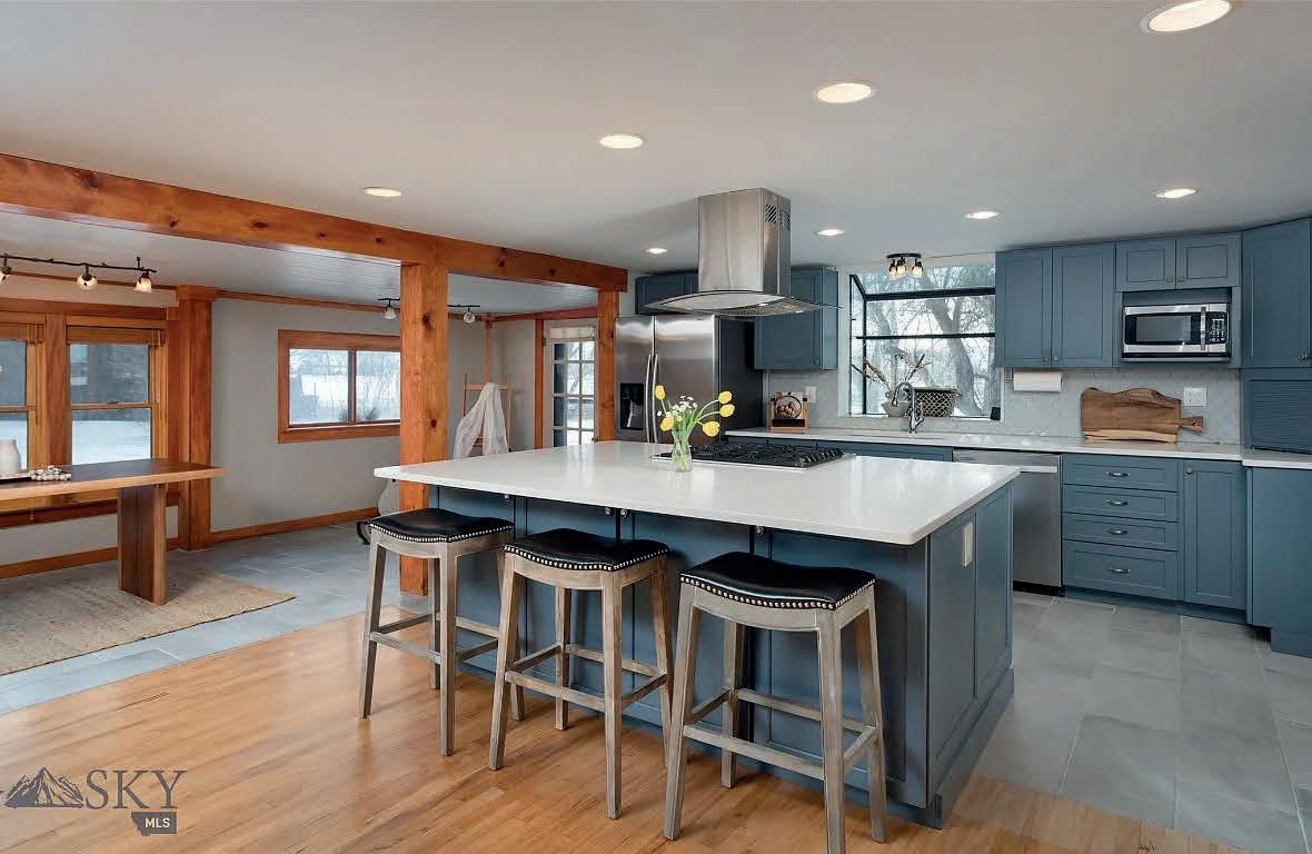 Enjoy spectacular and protected southern views of Livingston Peak from the privately situated home. Custom built in 2015, the home is 4,385 sq ft and features 4 bedrooms and 6 bathrooms. An entertainer’s delight, the home includes an inviting fireplace, and a kitchen with dual wall ovens and double oven gas range. There is also a cozy breakfast nook— perfect for meals and family gatherings.
