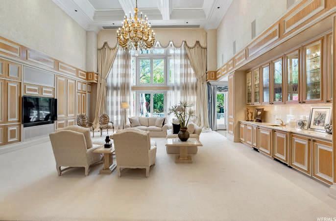 This exclusive luxury home is a timeless masterpiece. The property is a gated estate on approximately 7.79 acres in the heart of Orem, Utah! Magnificent grand entrance with marble flooring, hand-painted staircase. Stunning parlor and formal dining room with custom wood mantle and walls upholstered with Thai silk coverings. At the entrance to the expansive office, you will find intricate, antique doors which are inspiration for woodworking throughout the home. The elegant master suite has a breathtaking sun room and French doors that lead to the private spa. The lower level is an entertainer’s dream! It features a large dance floor with state- of-the-art surround sound and lighting, a DJ booth and full kitchen/bar. Don’t forget the exceptional wine cellar! This level includes a theater room with state of the art equipment and a 172 inch screen, a racquetball court, an exercise room and a gift wrap room! Outside, the grounds are very private, tranquil, and secluded! Sit back and relax in a chaise lounge by the unite salt water 60’ x 40’ pool with LED lighting, water feature, and spa.