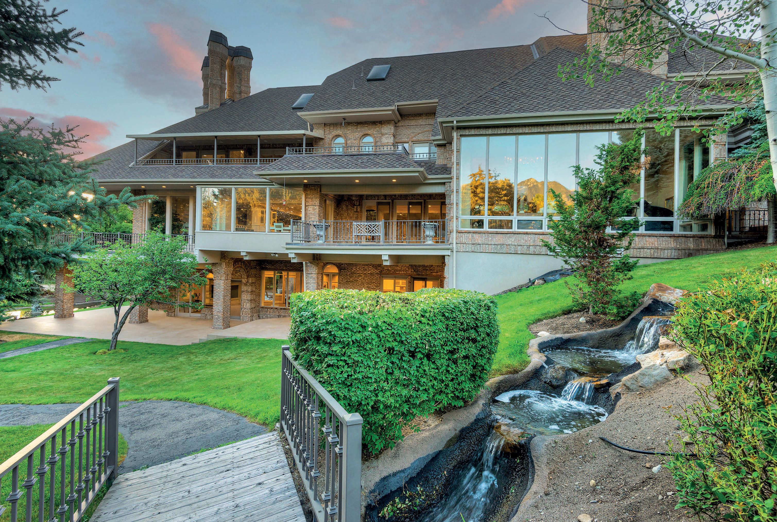 Once in a lifetime, a spectacular estate becomes available. This golden opportunity features approximately 3 acres of Utah’s most lush, gorgeous and private creekside properties with picturesque views of the snow-capped mountains. It’s a dream come true making your way down a private and heated drive, crossing the river to a sprawling mansion that exudes the ultimate in luxury resort living. Enjoy secluded privacy, yet the benefit of being 20 minutes from world class ski resorts, SLC International Airport, golf, hiking and biking trails, shopping, restaurants, and so much more. This European mansion is adorned with the finest materials including, European limestone, hardwoods, imported German windows, original doors sourced from legacy European estates...truly unparalleled quality inside and out. The homes features an updated incredible gourmet kitchen, multiple large yet cozy entertaining spaces, 30 ft vaults, massive beams and two story fireplaces. The primary suite is a true destination space in a private wing with dual dressing rooms, private laundry and a spectacular luxury bath with direct elevator access. This alluring property boasts over 3k sq ft of covered patio outdoor living, a private guest cottage for an on-site manager, radiant heating throughout, an indoor spa, salon area with a barber chair, sauna, steam shower, an impressive theatre, fitness area, a rec and arcade room, and an abundance of storage. There are two elevators that provide access to each floor, an outdoor pool and hot tub with his/her bath, tennis courts, 4-bay garage, a detached 2-bay garage, security system, back up generator, 4 ponds supplied by a private well, and 4 water shares. This estate is the ultimate setting for social gatherings, entertaining, and simple everyday enjoyment. Why build when this dream home is available at this price!