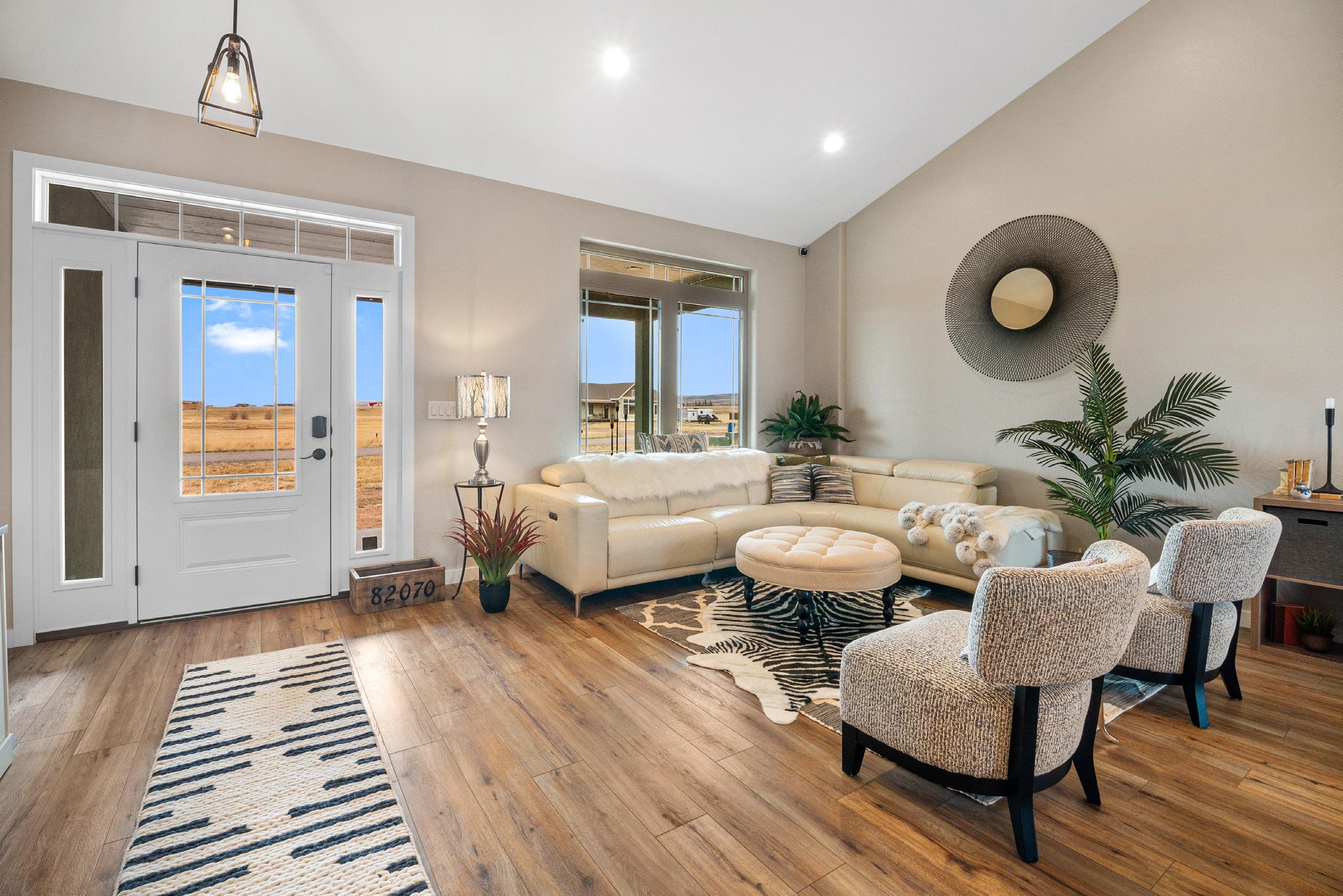 Nestled on a sprawling 2.09 acres with panoramic views of Wyoming’s breathtaking landscapes, this stunning 3,748 sqft. home offers both luxury and serenity. Boasting 5 bedrooms and 3 custom-designed bathrooms, including a master suite with a soaker tub and walk-in shower, it’s a haven of relaxation. The heart of the home is the openplan living area, featuring stunning “Wormy Maple” cabinets, granite counters throughout, hardwood floors, stainless steel appliances, and a back patio perfect for BBQs. The fully finished basement includes a second full kitchen, stacked washer/dryer, and exquisite guest bathroom, making it ideal for entertaining or a private retreat. Wake up to glorious sunrises and enjoy evenings with views of the Colorado mountains and the Snowy Range sunset spectacle. With ample land to landscape or expand, this property offers endless possibilities. Seize the opportunity to own this slice of paradise and create your dream lifestyle. Call today for your private viewing!