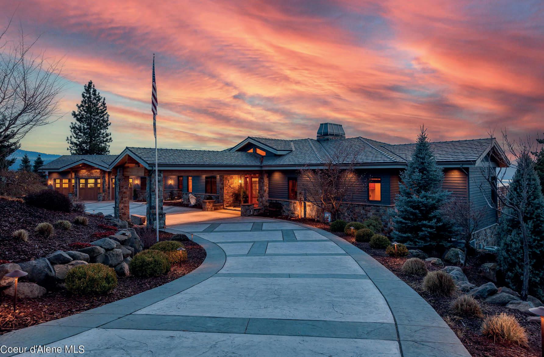 Soar with the eagles in this close-in stunning custom lake Coeur d’Alene view home. This gated Syringa Heights rare offering, features unobstructed views of CDA Lake, Arrow Point, Tubbs Hill and the Coeur d’Alene Resort Golf Course, not to mention jaw dropping territorial mountain views along with frequent wildlife spotting. Amenities include a tile roof, heated driveway, tongue and groove overhangs, gas double sided fireplace on an oversized covered patio with outdoor kitchen. Inside features include main floor master suite with walk-through closet, large office, 4 person elevator, gourmet kitchen with Wolf and Sub-zero appliances, two laundry rooms, bar and theater room. All bedrooms are spacious and en-suite with views of the lake for your guests enjoyment. This home is one of Coeur d’Alene’s finest properties.