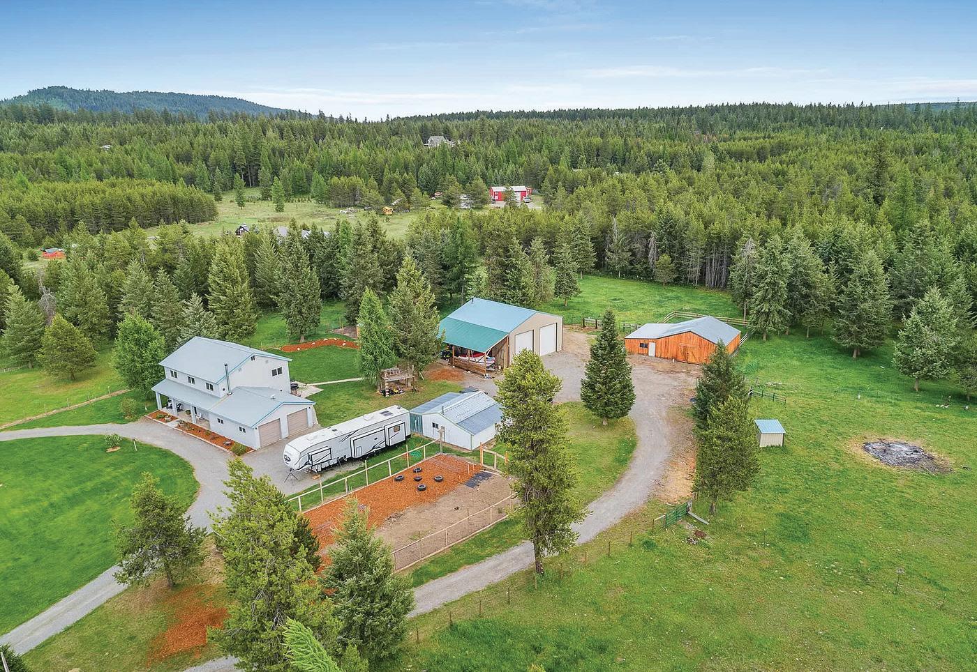 Experience self-reliance on this 5-acre mini-farm between Athol and Spirit Lake in Bonner County. This 5-bedroom home features a spacious kitchen overlooking a farm with a 5-stall barn, milk room, butcher shop, chicken coop, garden, and grazing paddocks. A 36x40 insulated shop with two 14’ roll-up doors, RV dump, and lean-to provides ample storage. The steel-framed, two-story farmhouse has a main floor bedroom with an ensuite, a wood stove, and a living room with lawn views. Upstairs offers four bedrooms, one bath, and a large finished attic. Additional features include a 40gpm well, no CC&Rs, and a $15k flooring credit. Move in and make it your own!