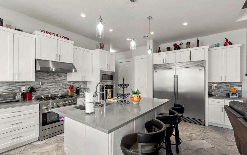 This is one of the most livable and flexible homes you will find with so many creature comforts, an east facing backyard and in such a great neighborhood. Spurwing Heights includes a social membership to the club (everything but free golf) in your HOA dues. This builder’s own home includes too many upgrades to list: Enclosed hot tub patio, Thermador appliances & steam oven, cabinet upgrades including master closet dressers, in-line humidifier, extra sound insulation. Storage galore with a huge pantry, upstairs storage room, detached shed with power. Garage has a storage loft, 2 closets, 30-amp RV outlet & hose bibs. Luxurious back yard landscaping including fruit trees and raised garden beds. Front Courtyard, 2 home offices – 1 in front, 1 off the master. If you love sunsets and fireworks check out the 3rd floor flex room – What a view! This house does not feel dated, in fact the green kitchen cabinets are a 2022 color of the year. Check out the 3d tour captures the most accurate color of cabinets.