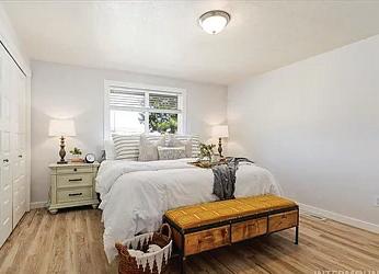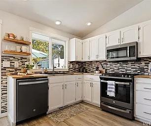 Boasting expansive & breathtaking views of the Boise Foothills from the backyard, this fully updated 3 bed 2 bath home is a must see. Ideally located in serene Northwest Boise, this lovely home is a short bike ride to hiking trails, parks, the Boise River, & the Greenbelt - yet just 10 minutes drive to Downtown Boise & Eagle. Vaulted ceilings in this split-bedroom home create an inviting & airy feel. Newly installed LVP flooring extends throughout the entire home. The open & functional kitchen features a gas range with well-cared for butcher block countertops, refinished cabinetry, & GE Appliances.