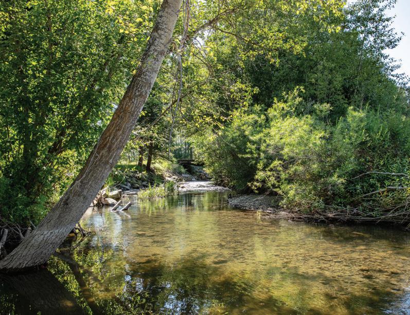 river rock… installed by a true local artist. The Main Home and Carriage House feature high end appliances, steam showers, custom rock fireplaces and plank flooring. The large dining deck invites you to take in the outdoors, enjoy breathtaking views of the Absaroka mountains up the beautiful valley, most importantly, you will be soothed by the sounds, the music of the West Boulder River. Finally, just steps from your deck await rainbow and brown trout. The property is surrounded by 70+ evergreen trees for privacy and provides elegant landscaping which features two beautiful rock gardens. The pasture/garden area is irrigated with sufficient grazing area for horses and room for a barn or cabin.