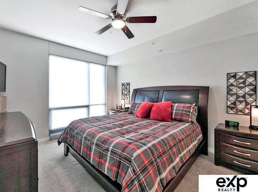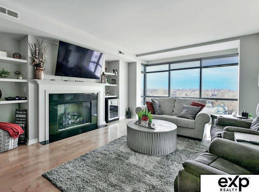 Enjoy the convenience of condo living at Midtown Crossing with a 2 bedroom, 2 bath and 1 deeded garage stall!! This condo is larger than most 2 bedrooms with a deck and ready-to-go gas grill. The floating shelves around the fireplace are a new addition. Also, the master bath has an all new walk in shower with beautiful ceramic tile and a large walk in closet. Expect a beautiful view of Downtown Omaha and Turner Park and walking distance to the Dog Park at Dewey Park!!! Concierge service and 24-hour security are included in the monthly HOA along with gas, water, sewer, trash, recycling, common area maintenance & insurance. Also, find quick access to dry cleaners, grocery store, coffee shop, restaurants and more. This is a premier Omaha location and includes a roof top club house and large patio.