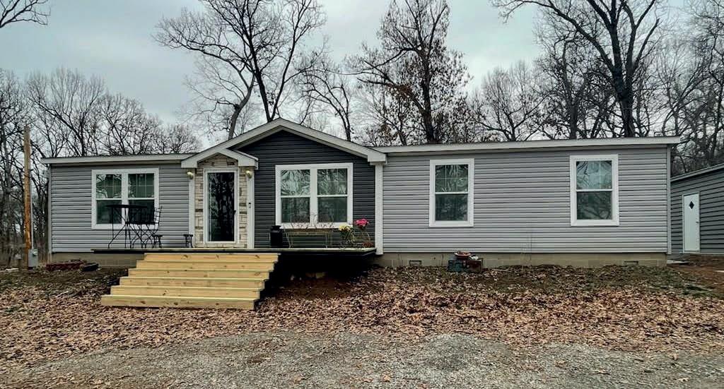 Enjoy secluded country living in this 3 bedroom, 2 bathroom manufactured home on 2 acres. The yard is fenced to protect your garden from the deer that visit each day. A metal container building serves as a workshop. Enjoy the view from either of the two decks or from the living room in front of the fireplace.
