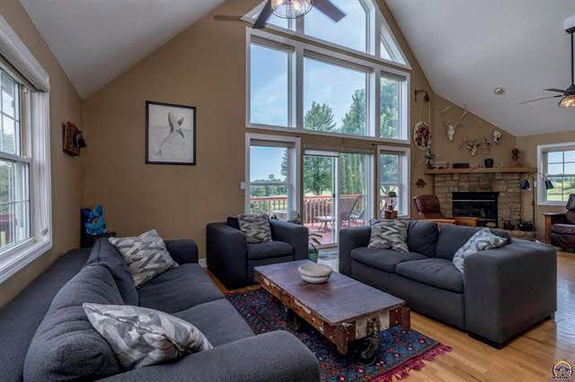 This uniquely versatile property boasts endless options, as a personal property, sportsman & hunting lodge, business venture, or company retreat. It consists of 34+- acres and is 4.4 miles south of Smith Center, Kansas, and directly across HWY 281 from the Smith Center Municipal Golf Course. The property consists of a 2004 home with full walkout basement and attached garage. This is a 3-4 bedroom, 3.5 bath home. The stocked fishing pond is behind the home. The original garage/shop is to the far south of the property, and is 64x30. A new lodge/guest house was built in 2019. All lumber was shipped in from Kremmling, Colorado. The lodge has a large living area, complete kitchen, 3 bedrooms, 3 baths, spiral staircase to both the basement and upper loft with a walkout balcony, overlooking the property. A new garage was built by the lodge in 2023, and is 60x40. The insulated garage has automatic doors on both sides, electrical outlets every six feet, and Dusk to Dawn lighting. There are both shower and spa rooms. The property has both rural water and well water, septic system, and propane (2 underground tanks and one above ground tank.)