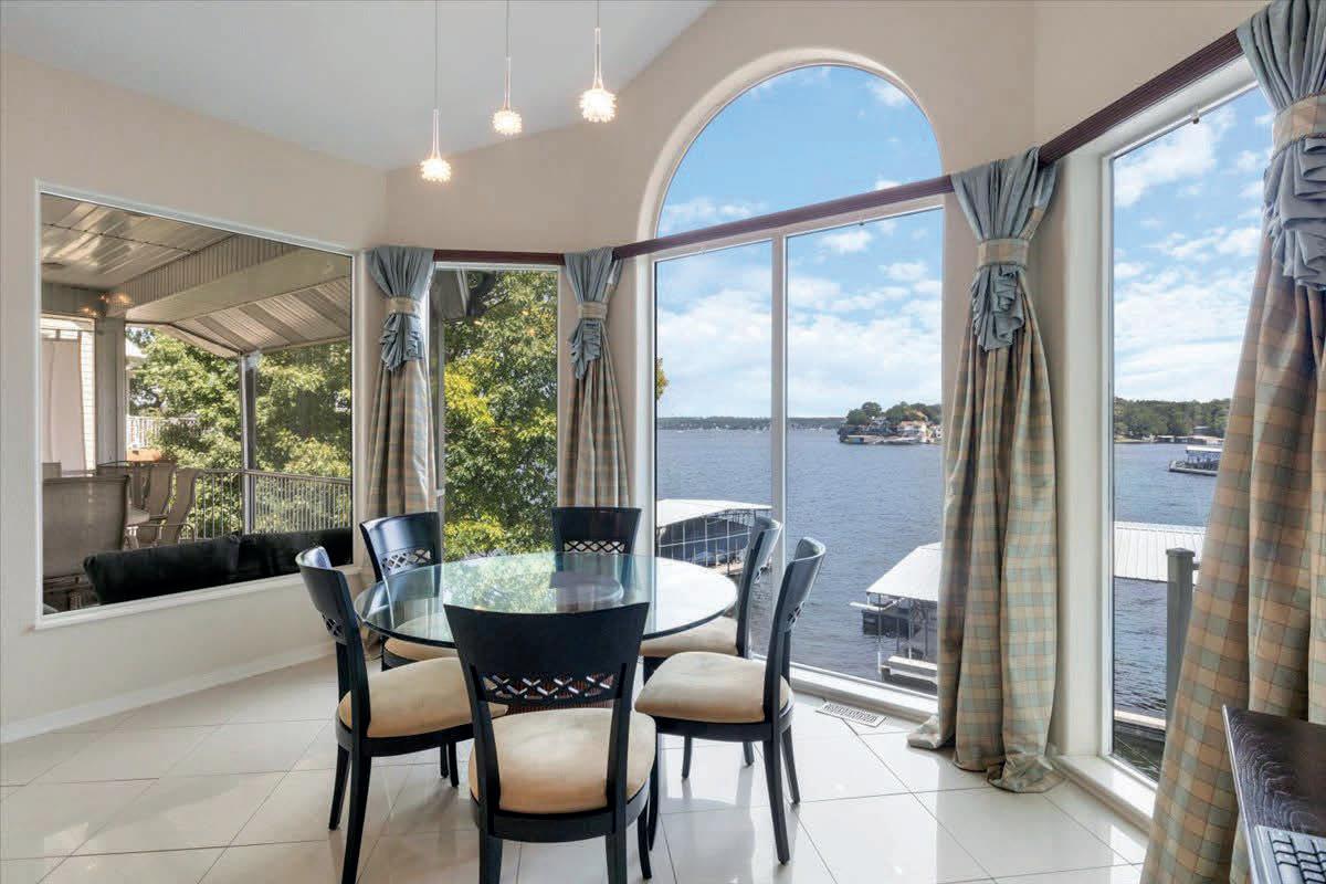 The dockside patio and large concrete dock with a swim platform and three slips (18x44, 12x24, and 12x12) cater to boating enthusiasts. This estate offers unparalleled luxury in a serene, private setting, making it the perfect retreat for an exquisite lakeside lifestyle, whether hosting grand events or enjoying peaceful solitude.