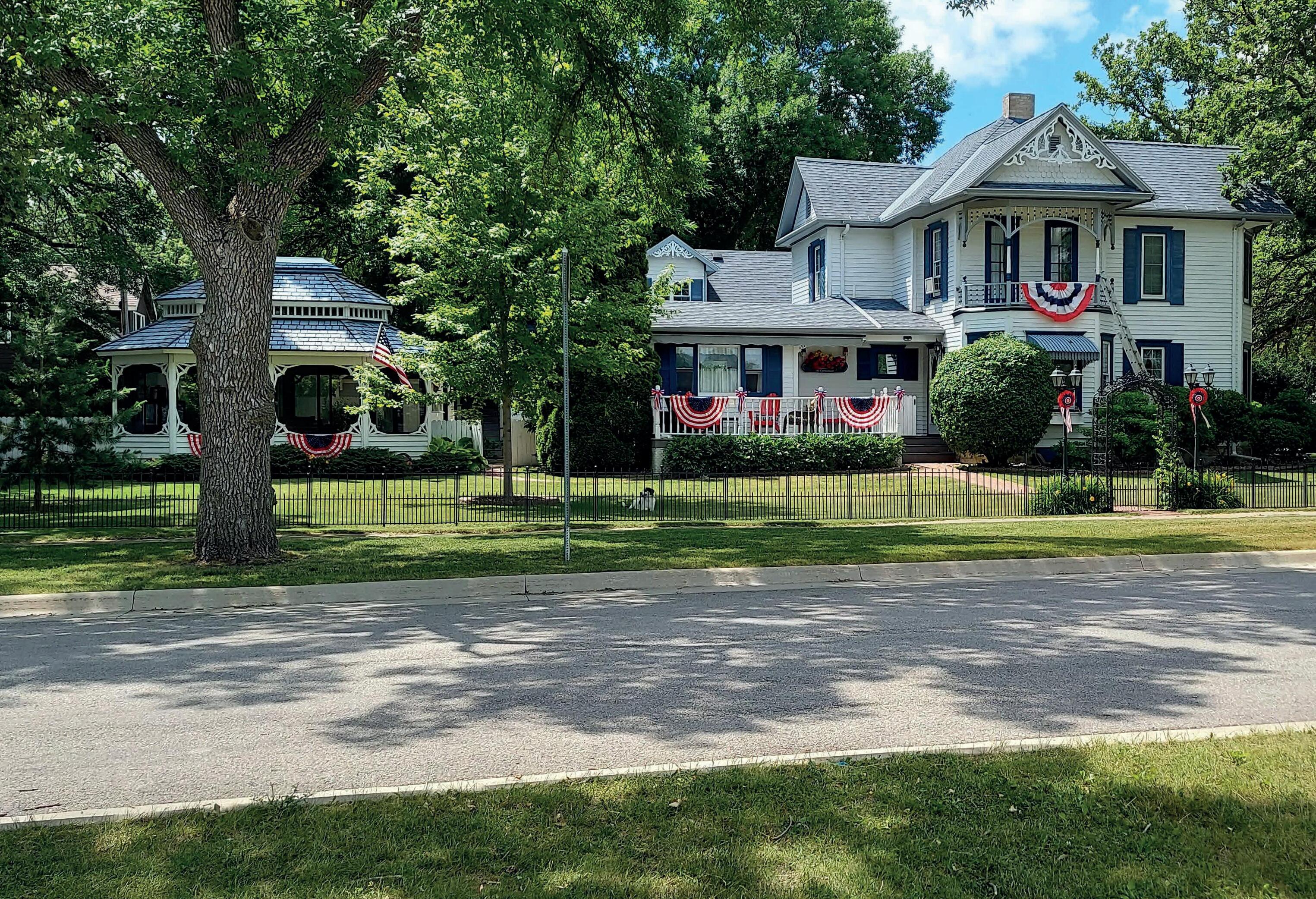 This stunning historic brick home near downtown Oskaloosa offers timeless charm and modern comforts. It features intricate details like custom woodwork, marble transitions, and original hardwood floors. The main level includes a kitchen with custom cabinetry, a formal dining room, a grand living room with a fireplace, and a den. Upstairs, the primary ensuite boasts a soaking tub, marble tile, and a fireplace surround from 1800s England. Enjoy natural light from large windows, a balcony overlooking the secluded backyard, and a two-car garage. With a full basement and walkable access to downtown, this home is truly exceptional.