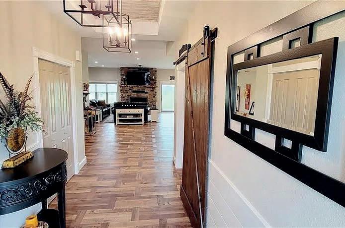 6BEDS • 3 BATHS • 34.96 ACRES • $890,000 Acreage/Mini-Farm Alert! A one of a kind 35+/- acre acreage with pond, timber, crop ground, pasture, hunting, and open green space. completely remodeled 6 bedroom and 3 bath Ranch home with walkout basement. New roofs on house and all buildings except Pole shed. This acreage has trails through timber and pond area. Pond is spring fed and fully stocked. Fences are all just inside the lines and belong to this property. Driveway has an easement for property to the West and shares maintenance. There is a 26’ W x 42’ L x12’ H walls detached garage with 6” studded walls fully insulated and insulated ceilings which has a heated and air conditioned office and a work shop or room for your dogs. Also a 32’ x 44’ machine shed with electric fence underground for pasture fence. Water tank for pasture with shut off by the well West side of detached garage. 3 year old oversized septic system and TOT is done and complete. Water test is done and results are excellent. A storage shed/playhouse by the house and a storage shed at the pond for fishing, boating items, grills, camp items. Playground set stays and has just been updated with a lot of new pressure treated wood and freshly painted. Views here are spectacular and you can see for miles. One owner is a Licensed Realtor in the State of Iowa