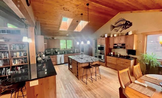 This home sets on 1.7 acres along Long Lake, featuring a renovated 3-bedroom house with additional beds in the tiny cabin. The well-maintained property includes a manicured lawn and 150 feet of shoreline, offering beautiful views from anywhere on the grounds. Both homes can be purchased for a total of $847,000.