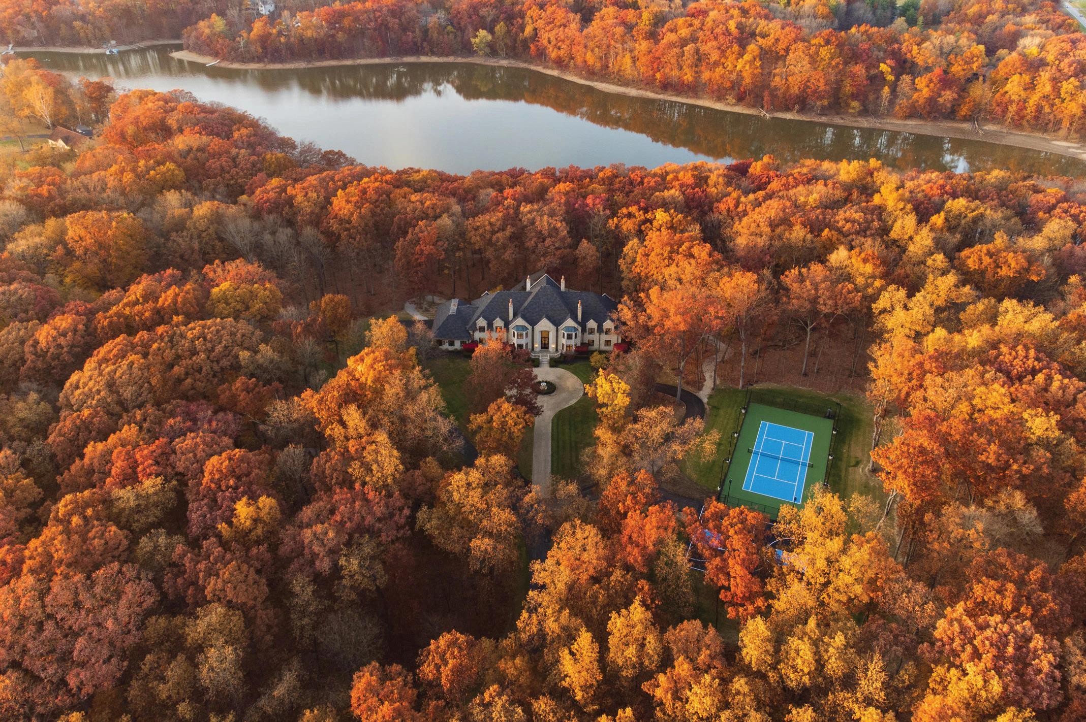 This Completely Renovated Estate Home has it all. Top area designer was hired to complete this Magazine Ready home. From the winding gated driveway to your private ten acres and beautiful treed yard you will find your new home. Custom built beautiful stacked stone and stucco 1.5 story home with detached Carriage House with bedroom, full bath and 6 car Tandem Garage. Beneath the Carriage House is a suspended Garage full of light and 3 garage doors. This additional space could be a workout room, pool house or additional finished space. In ground concrete/gunite pool/hot/tub, salt water/heated and kitchen area are situated between the home and the Carriage House. Pool will get plenty of sunlight and room to play, huge fenced yard for games or pets. Over 3,000 sq feet of stone patios. Enjoy a cool night with your outdoor fireplace or fire pit by the pool. Once you enter the breathtaking entry of the home you will enjoy an abundance of light and windows throughout. The Main floor features the primary