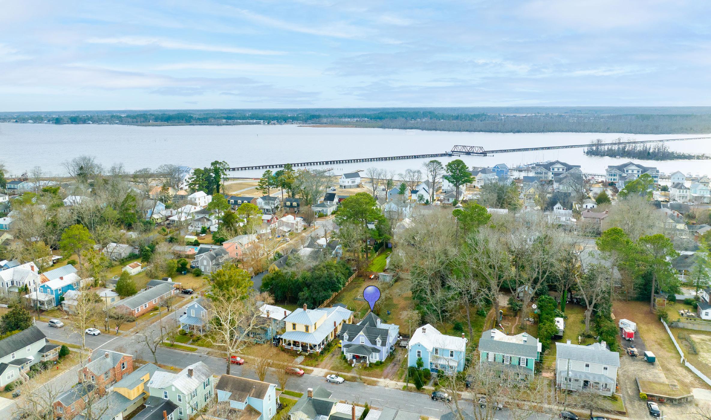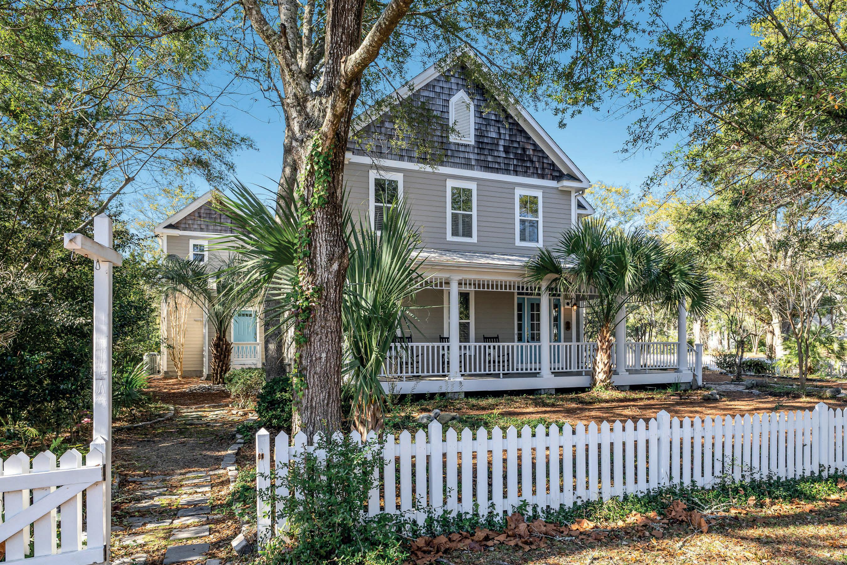 bath gem is situated perfectly, nestled among maritime oaks for a shady and picturesque yard that leads down to a sandy beach