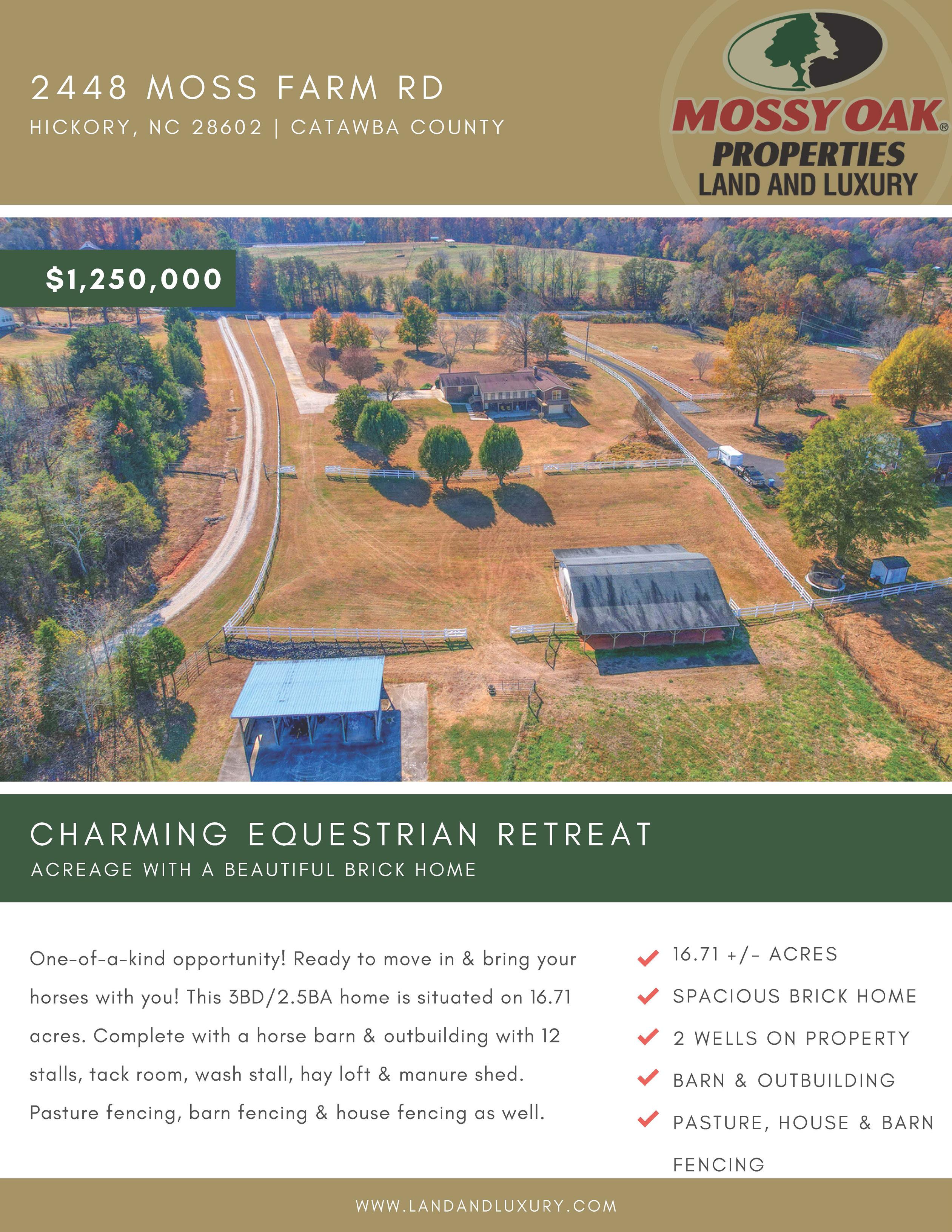 A UNIQUE OPPORTUNITY FOR A BUILDER/DEVELOPER 3054 HEGLAR ROAD, CONCORD, NC 28025 107.18 Acres (LOT)