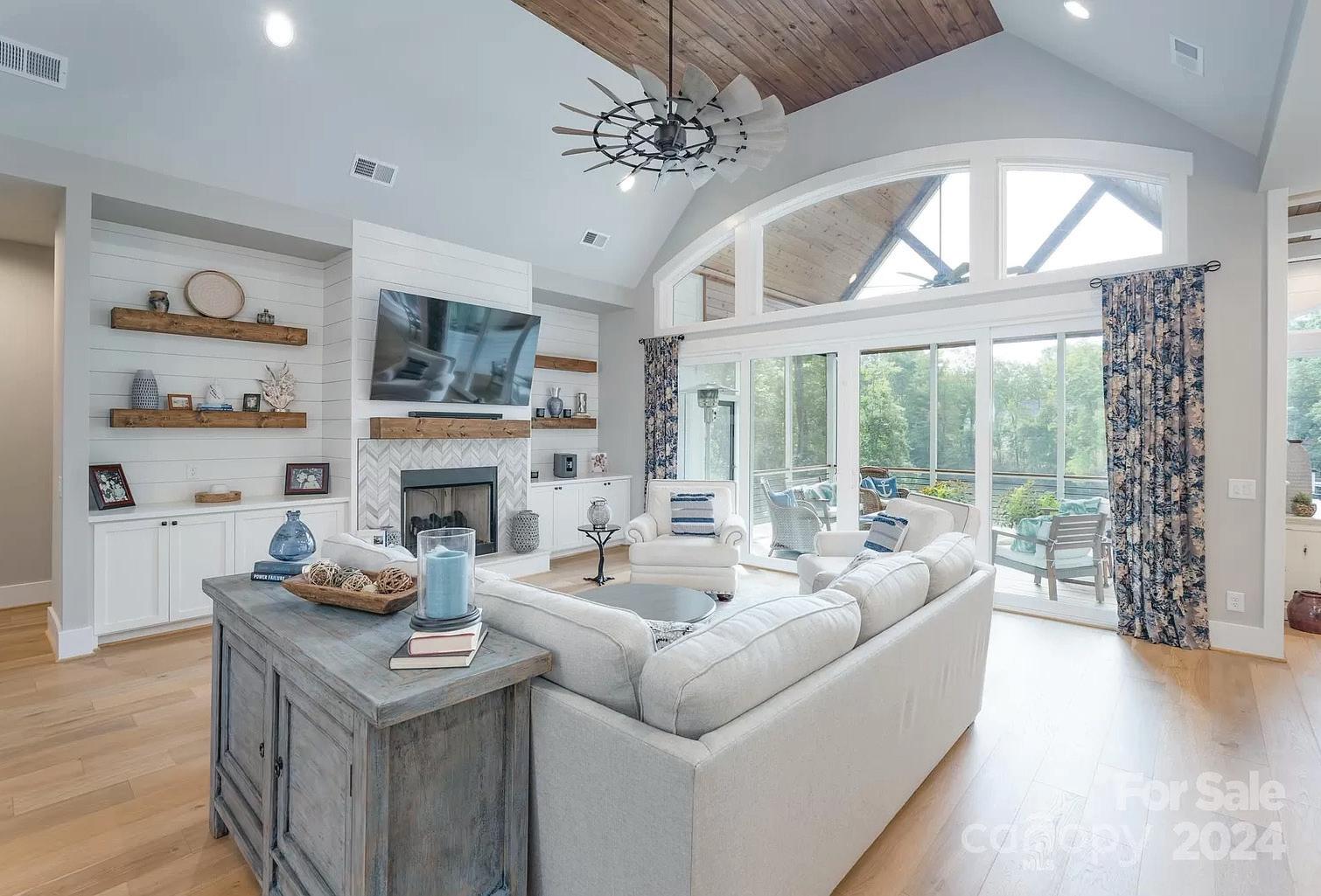 There’s nothing like this in Western NC! Stunning, ultra-modern new construction with all steel framed construction on solid concrete Superior Walls, no lumber is structural. All electric, no gas. 3-story home, well-appointed w uncompromising quality and exquisite attention to detail to last the test of time. 10 sliding doors and infinite windows face the lake and mountains. Tongue & groove ceilings throughout the top floor, custom mural on LR focus wall, Z-Line appliances, oversized waterfall granite countertops. Lg main LR w fireplace, office/hybrid room, sitting area in 2nd floor entry, massive entertainment room in the basement w arcade game, ping pong, + kids’ suite w 6 built-in bunks, inflatable jungle gym w slide & ball pit. Hot tub, cold plunge tub, three fire pits. Sleeps 18. Full access to Rumbling Bald’s extensive amenities, golf, private beach, marina, boat launch, pickleball/tennis, wellness center, restaurants, bars, and much more! Rentals allowed. Offered turnkey.