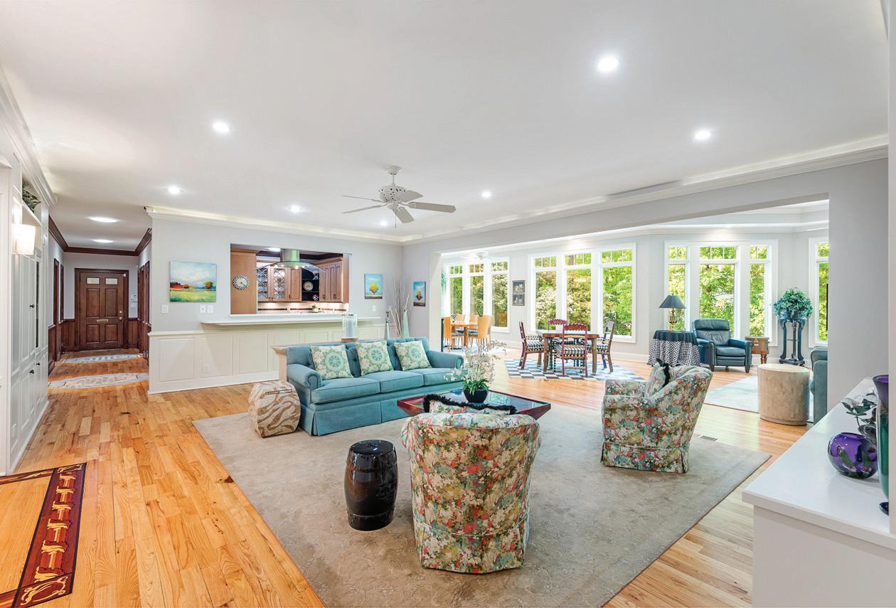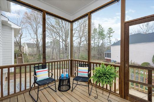 Situated on a magnificent lot, this home exudes privacy and functionality in its well laid out floor plan for living and entertaining. From the moment you enter this majestic home you are awed by all the natural light and open feeling. The wood paneled library/office on your left as you enter affords you an elegant space with built-ins. The updated kitchen with quartz tops, gas range and double ovens is open to an oversized family room and dining area. Your guest room on the other side offers privacy for you and your guest. This oversized primary guest offers a full bathroom and screened porch. Upstairs: Your primary boasts a sitting room with another oversized primary with screened porch. The private bath has both jacuzzi tub and separate shower. Two large additional bedrooms which have en suite bathrooms. Farther down the hall is the inviting playroom equipped with built-ins and an exercise/flex space. Downstairs is the walkout basement designed for everything you desire! Separate bedroom and bath for guests. A dream home, rarely on the market. Owners are relocating. In addition, there is a community pool and tennis courts.