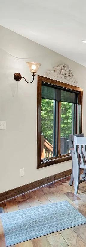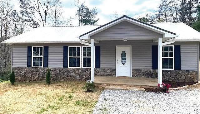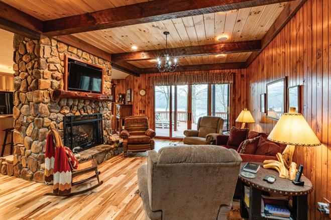 $349,000 | A charming cottage tucked away in the woods with plenty of light. Easy access and privacy. This home offers an open floor plan with an amazing stone fireplace in the living room and an incredible view as you step out side onto a large partially covered deck.