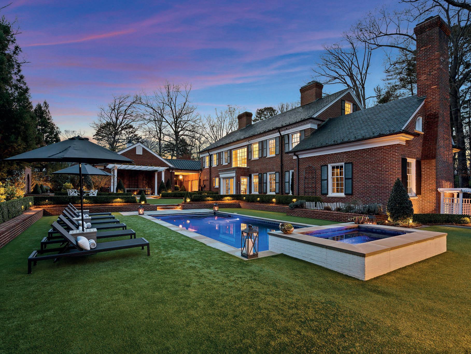 Welcome to the idyllic 1922 Greenlaw House, designed by Arthur Cleveland Nash and built for Edwin Greenlaw, namesake of UNC’s Greenlaw Hall. This lovely property is situated in the heart of Chapel Hill at the edge of the Historic District, and only a short walk to UNC and downtown Chapel Hill. The 5,586 sq ft, 4/5 bedroom, 4.5 bath home with guest house, pool, and detached garage with large exercise room and pool bath is rarely available for sale and has only been owned by a handful of owners. The nearly one-acre lot has been professionally landscaped front and back and visitors frequently remark, given its central location, about the surprising privacy and the fact that only the sound of the fountains can be heard in the house and backyard. Impeccably restored, updated, and expanded in 201819, the property retains its 1920’s glamour and classical architecture while also offering modern features. The main floor offers quarter-sawn oak floors, 9 ft. ceilings, a large, light-filled kitchen with 10’ island and breakfast area, formal living and dining rooms opening to twin sunrooms/sitting rooms, and a spacious family room with two sets of French doors leading to the screened-in covered porch overlooking the bluestone patio, grilling deck and pool. A three-story winding staircase with mahogany banister and spindles leads to a second level with a large primary suite and two spacious secondary bedrooms - all offering gas fireplaces, ensuite marbleclad bathrooms, and walk-in closets. The third level includes 100-year-old heart of pine flooring, two spacious bedrooms/flex rooms with built-ins, vaulted and beamed ceilings, and a shared full bathroom. The guest house includes 665 sq.ft., open concept design and fully independent with a kitchenette, full bathroom, washer/dryer, and its own backyard. It’s the ideal intown home!
