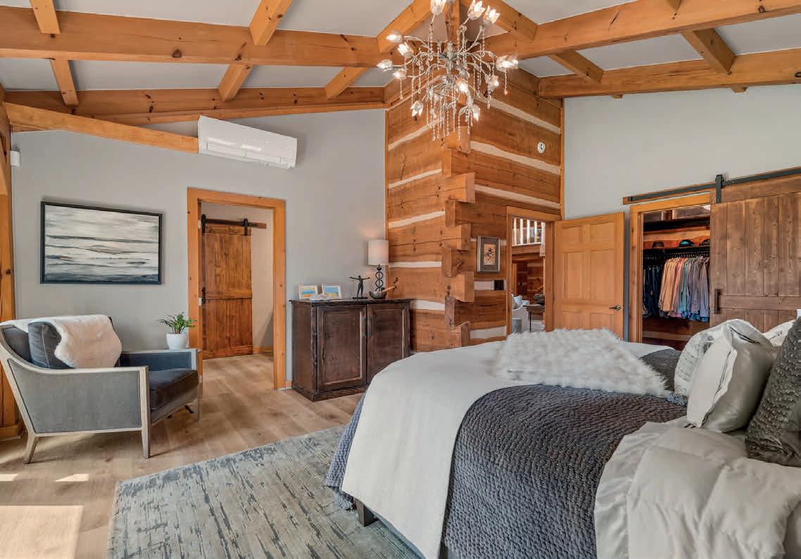 Soaring in every way, this beautiful high elevation home presents the nest in mountain living! Majestic, long range views are available from every major room in the house. The front porch provides the perfect greeting to this traditional yet current and superbly maintained home. The pine paneled living room has tall ceilings, a stone fl oor-to-ceiling fireplace, and windows facing the easterly views, with direct access to the porch. The primary bedroom also has tall ceilings and porch access. Upstairs are two guest suites and a bonus room. The lower level offers an additional living room, movie theatre, and easy access outdoors.