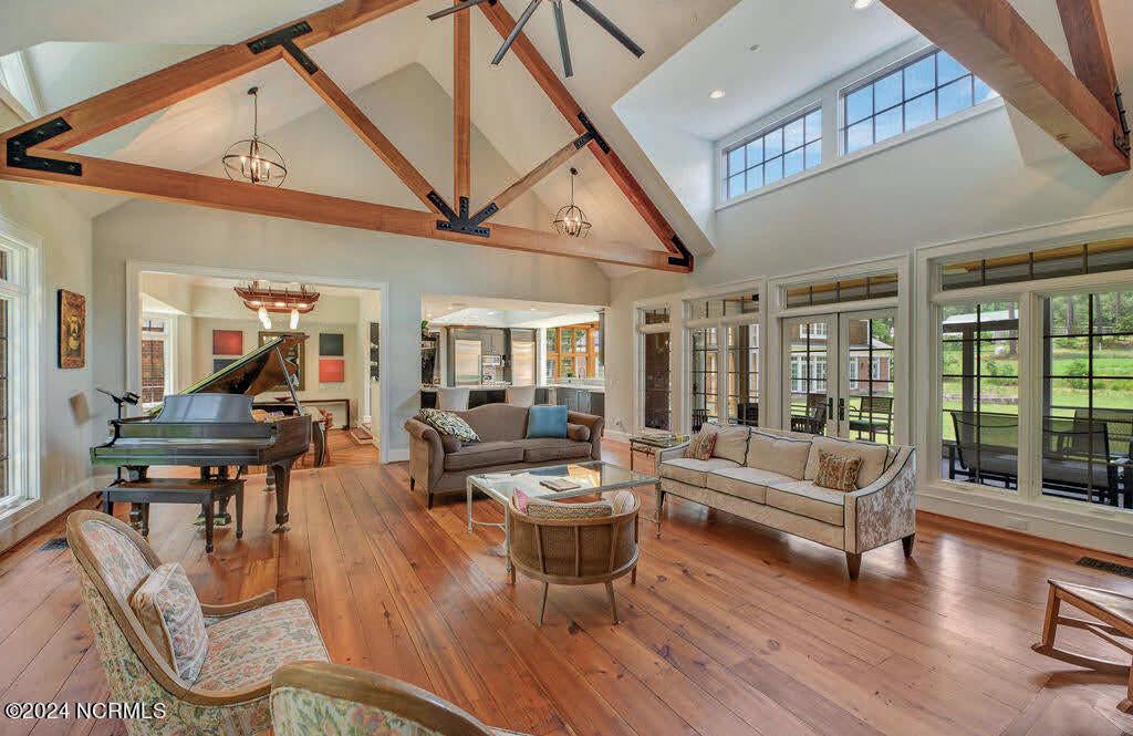 The current owners of this fabulous farm property in Pinehurst, North Carolina, have turned a vision into reality by creating a state-of-the-art, renewable energy, luxury home tailored to meet the needs of the modern family, complemented by a sustainable fruit and vegetable farm. Just three miles from the famous Pinehurst Resort, the property offers endless possibilities, including the potential for conversion into a small horse farm or a family gathering place, with significant investment opportunities as the sale includes 15 individual parcels, with more available. Since 2009, the farm has been cultivated with organic soil amendments and now boasts nine annual fields, bee hives, various fruit-bearing plants, and a 36 ft x 96 ft geothermal high tunnel for year-round production, including exotic crops like pineapples, avocados, and citrus. Equipped with a unique climate battery heating system, a prototype biochar kiln, an aerated compost production system, and a 30 ft x 40 ft workshop, the property is designed for both sustainability and innovation. The 8,992-square-foot main house is an engineering marvel, featuring state-of-the-art geothermal and solar energy systems, Civil War-era heart pine floors, and a gourmet kitchen. This remarkable property blends luxury living with cutting-edge technology and rustic charm, making it truly one-of-a-kind.