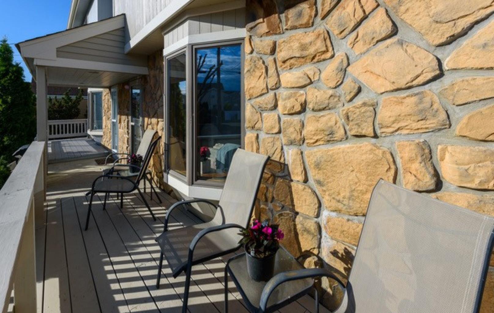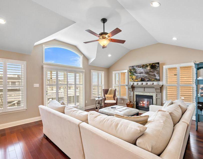• 25 x 25 Living room w/vaulted ceilings opens to upper deck with fire pit