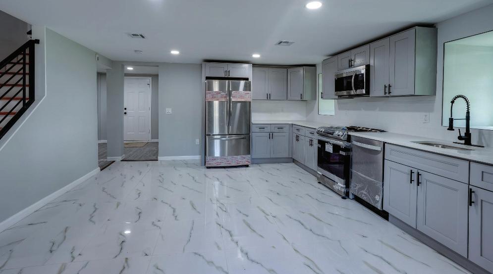 Beautifully revived, this stunning mid-century home is nestled within a quiet, premier enclave and offers incredible space to enjoy in and out! Wellappointed and versatile living spaces across 3 finished levels include a firstfloor primary suite, impressively finished lower level and great room with striking fireplace and cathedral ceiling. The private primary suite will delight with a walk-in dressing room and an en-suite bath with soaking tub, shower and double vanity. The chef’s kitchen offers premium appliances and boasts an extra-long island with seating, tile backsplash, chef’s faucet, wine cooler and ample cabinet storage. The dining room is nearby. Along the back of the house, find a fantastic family room with access to the patio and yard. An additional bedroom and full bath, plus garage access, completes this level. Upstairs find light-filled bedrooms with great closet space and a large hall bath. The ground level offers exceptional ceiling height and huge spaces to enjoy for leisure and home recreation with access to storage, laundry with wash tub and a bonus full bath with shower. Outside, find a private paver patio surrounded by a manicured lawn with mature trees. Modern kitchen and baths, central air conditioning, newly paved driveway, refinished hardwood floors and stylish lighting are a few of the updates you’ll enjoy.