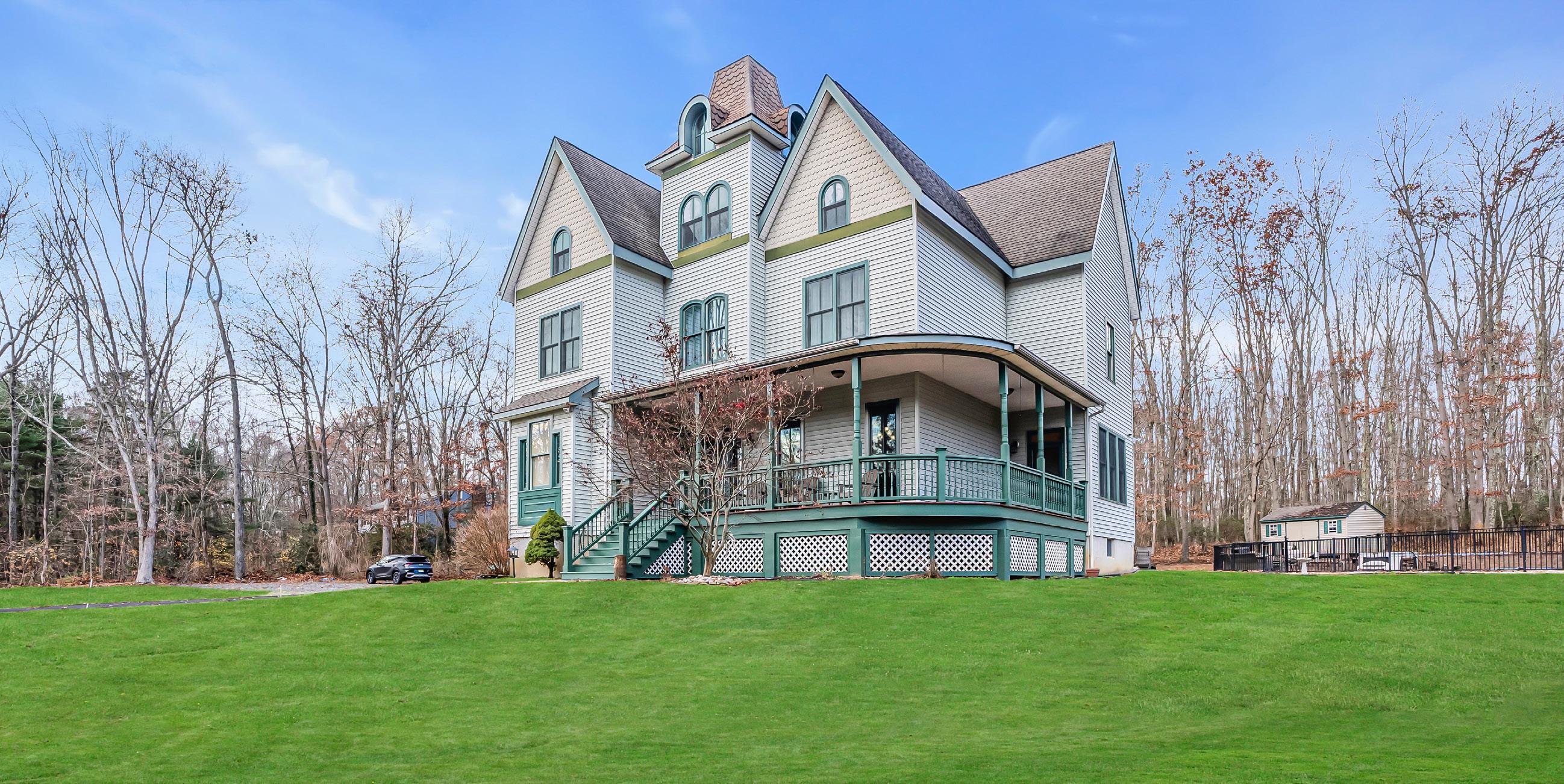 With impressive architectural details, including soaring ceilings on the first level 13 Pine Dr delivers an air of grandeur. A gourmet kitchen features a state-of-the-art appliance package, while luxurious hardwood flooring adds an elegant touch to the 1st floor living space. The family room, characterized by a warm ambiance and centered around a wood-burning stove, provides a cozy retreat. The primary suite boasts a custom-built, princess closet and ensuite. The full basement and walk-up attic have great potential for conversion into finished space. A wrap-around porch overlooks an in-ground pool and fenced paddock, creating an idyllic setting. Nestled on a 6.88acre estate, this farm-assessed property appeals to those seeking serenity and privacy.
