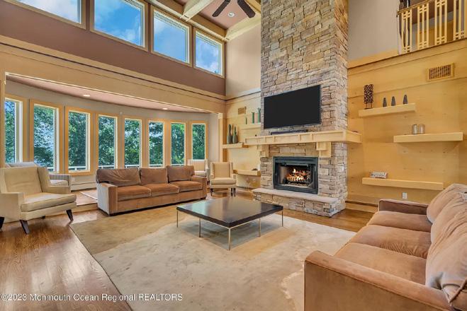 This sophisticated custom, all brick, EnergyStar home is set on one acre in sought after Holmdel. Located on a beautiful wooded cul de sac, the home has over 11,500 square feet of finished living space- well suited for multi-generational living! No expense was spared in the design and construction, which includes steel beams, 10+ foot ceilings, 8-foot custom Mahogany doors, 4-gas fireplaces, 5 garages, hydronic and radiant heat even in the garages!