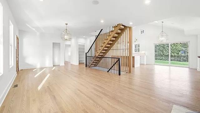 Set on almost half an acre, this exceptional new construction home is in the heart of desirable Maplewood, with nearby schools, shops & restaurants, and easy access to NYC and local business centers! Instagram-worthy design features and a flowing floorplan across 4-finished levels with high ceilings, modern lighting, and a designer’s aesthetic. A 6-paned front door opens to a foyer with gleaming wood floors, a staircase with a modern balustrade, and wide openings to the formal living room and dining room. Chef’s kitchen with quartz counters and an oversized island with seating, pendant lights, beverage cooler, built-in microwave, gas range with custom hood, and fridge with glass panel. Light & airy family room with high ceilings, gas fireplace, and access to the patio and yard. Mudroom with custom built-ins and convenient access to the 2-car garage. Upstairs find generous bedrooms with large closets well-served by nearby full bathrooms arranged across the 2nd & 3rd floor, plus 2nd floor laundry center. Incredible private primary retreat with shiplap accents, full en-suite bath with heated floors, soaking tub, double vanity, and custom shower, plus walk-in closet/dressing room. Full, finished lower level with full bath, guestroom with full egress, exercise/ office space recreation room with beverage bar and built-in shelving. Outside find a backyard patio and firepit set amidst an approximately 330’ deep treed property - the ideal setting for your own suburban outdoor oasis!