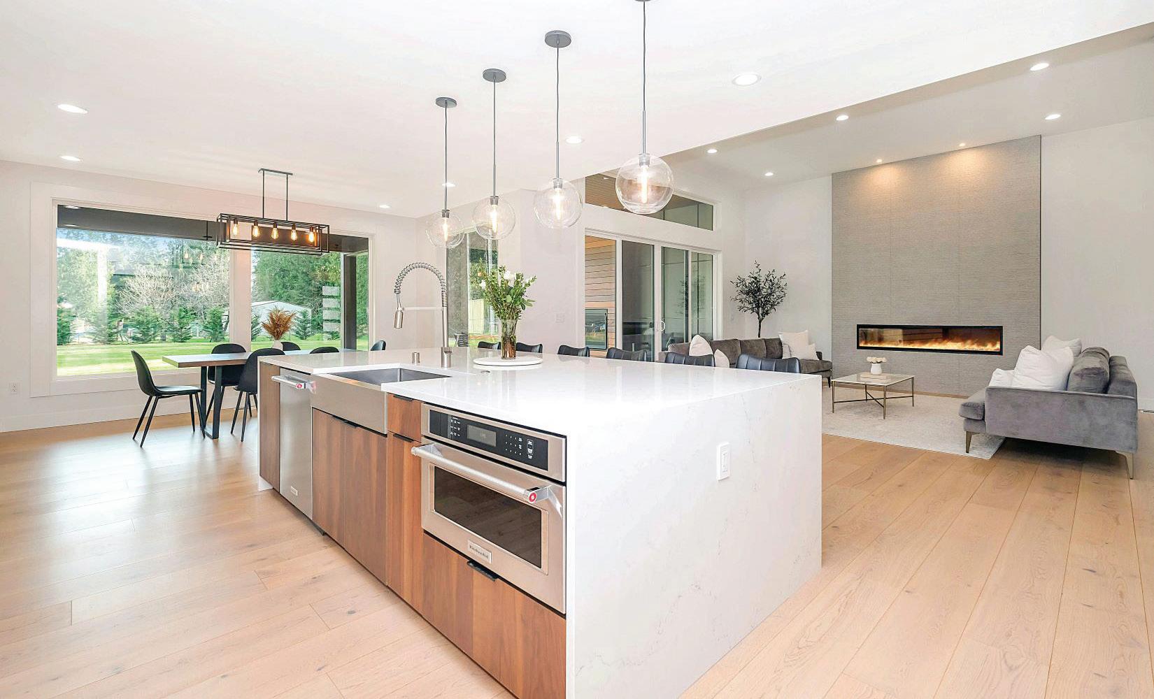 • Second floor spacious and open floor plan with large kitchen/dining area, breakfast nook, and access to family room and front deck