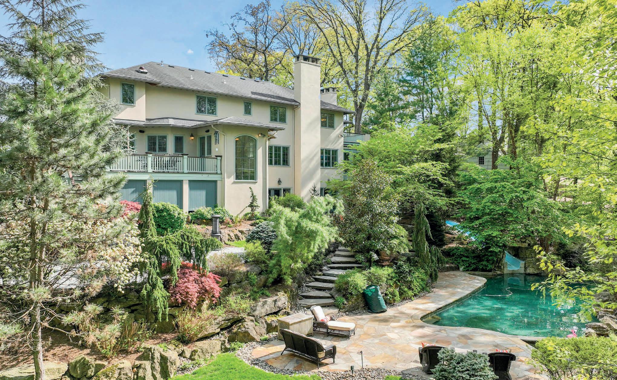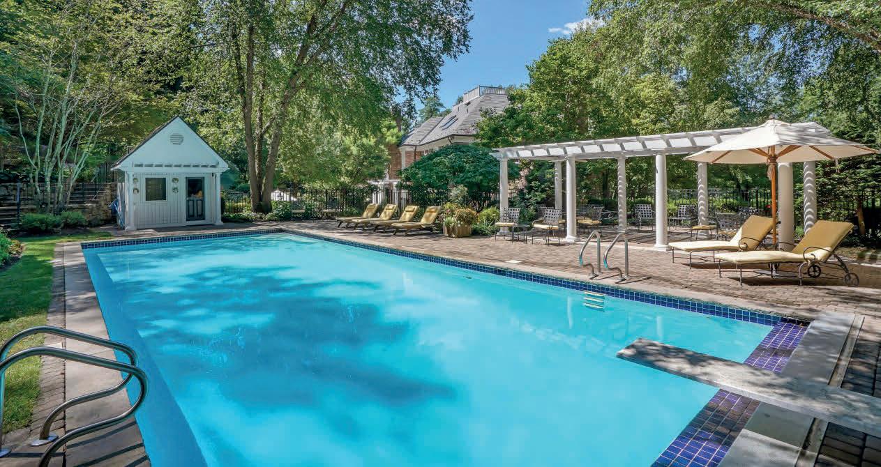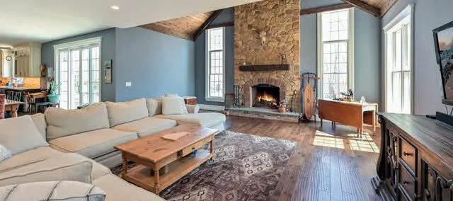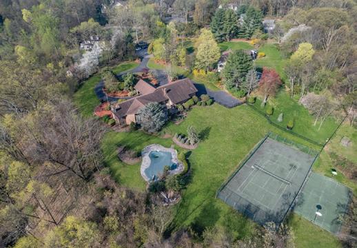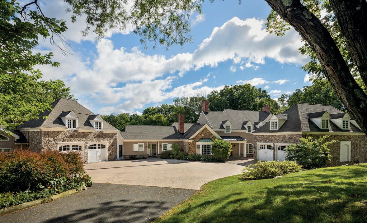 While the main home’s Early American heritage is displayed throughout its 15-room floor plan, the fresh, bright aesthetic creates a welcoming impression. Established landscapes on the park- like grounds are perfect for outdoor entertaining with an in-ground gunite pool, hot tub, extensive outdoor kitchen, double-sided fireplace and charming gazebo. The layout offers five en suite bedrooms with walk-in closets and two powder rooms. Well-appointed gathering spaces include an expansive kitchen, dining room, living room, family room, great room, tavern room and yoga room.