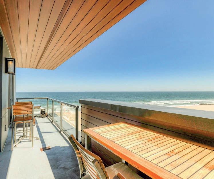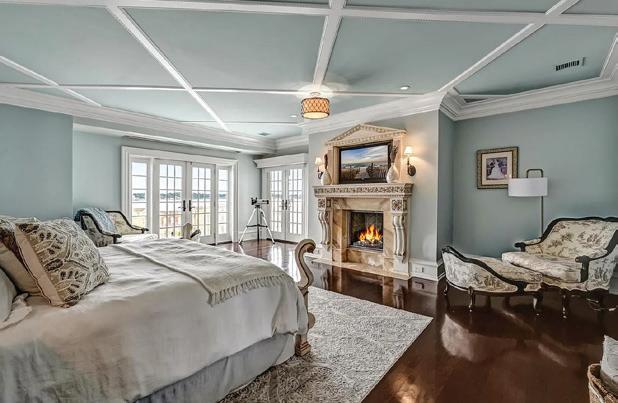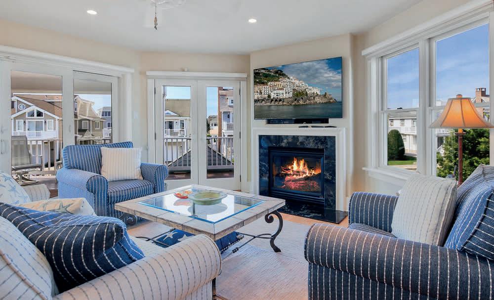 This luxury Avalon beach home that is fourth from the ocean is the epitome of coastal living. Boasting stunning ocean views, this home was designed for maximum comfort and relaxation. As soon as you enter this custom-built beautifully furnished home, you will be struck by its spaciousness, a natural palette of blues, creams and whites and the abundance of natural light. The home, designed by OSK Design (John Oliveri, Dan Shousky and Paul Kiss), at a 45-degree angle of all the east-facing doors and windows to maximize the spectacular views of the ocean and inlet from multiple angles. You enter the foyer on the first level and are immediately captivated by a 265-gallon saltwater coral reef tank. This floor has three ensuite bedrooms, a large family room with custom built-in cabinetry, an under-counter refrigerator and sink. This room leads to a covered deck, a beautiful in-ground (34x18) pool and cabana as well as the detached garage. There is a powder room and large laundry room with access to the pool area. Beginning on the first floor there is also a 3-stop elevator. The second floor hosts the main living area with an expansive open floor plan, with hardwood floors, soaring ceilings and large windows overlooking the ocean. There is an expansive family room, living room and large dining room. The gourmet kitchen is a chefs dream, fully equipped with top-of-the-line stainless steel appliances, granite countertops, two dishwashers and custom cabinetry. There is also a powder room and two ensuite bedrooms. The master suite, an oasis with two private balconies, is almost 1200 square feet and covers the entire third floor. The street side of the master suite contains an expansive sitting area with a fireplace and TV and leads to a covered deck with a spectacular view of the ocean.