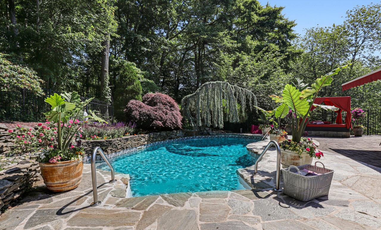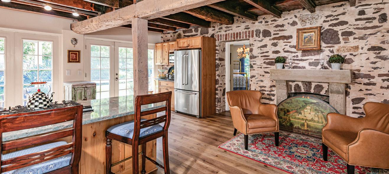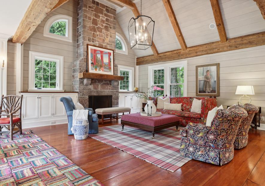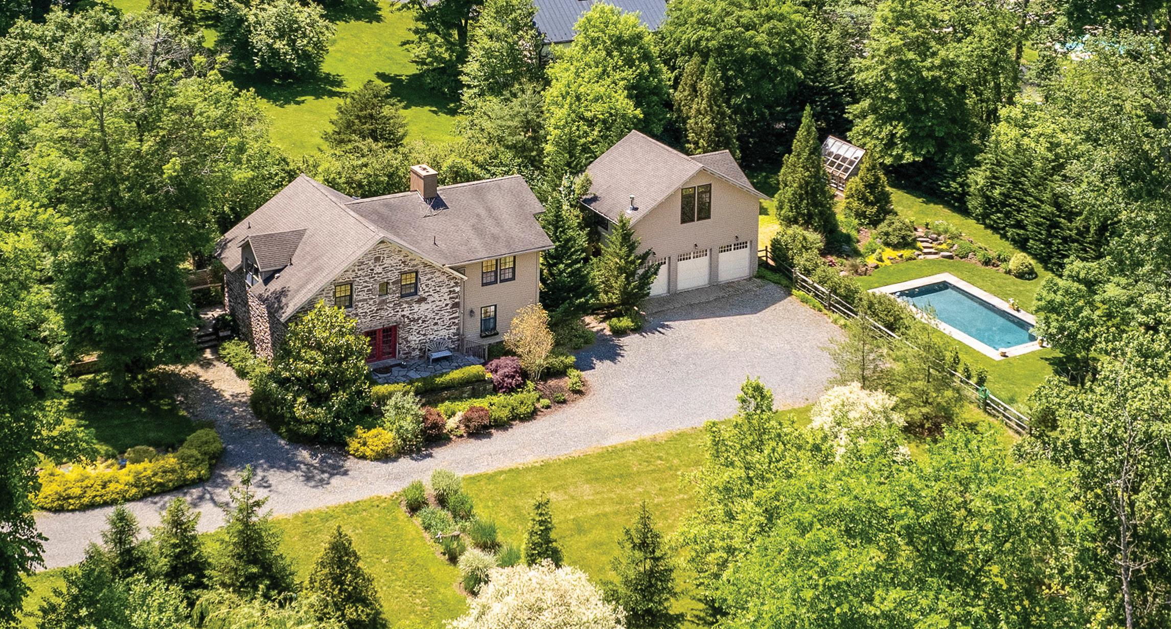Embrace the past and revel in the present in this one-of-a-kind stone carriage house on the picturesque banks of Stony Brook. The original structure, with hand-hewn beams and robust fieldstone walls, speaks volumes of its storied past. These classic elements are harmoniously intertwined with a contemporary open-concept kitchen. A private suite with a half bath over the garage serves well for guests or a home office. The property features a serene, heated pool, greenhouse, wisteriacovered patio, and trails leading to the picturesque brook, a haven for wildlife and a paradise for nature lovers.