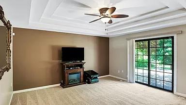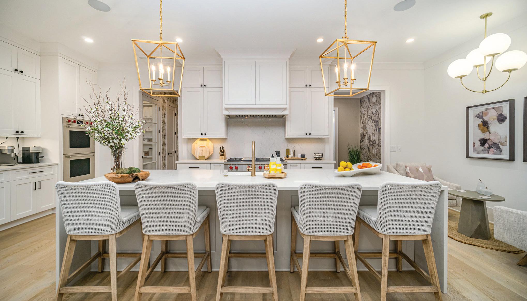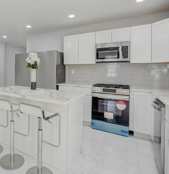 The Dream Chef’s kitchen is a highlight, boasting top-of-the-line appliances, a mosaic marble backsplash, contemporary-style soft-close cabinets, an all-white waterfall center island, a Samsung 4-door customized panel refrigerator, and a convenient drawer Microwave.