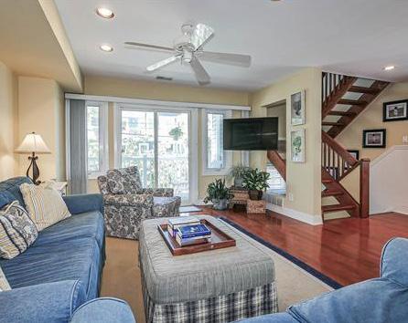 Highly sought-after, pet-friendly end unit townhouse just 1.5 blocks from the beach. Features a two-car garage plus guest parking. This 3-bedroom, 3-bath condo offers decks on every level. The first floor includes a patio, garage access, closets, storage, and a full bath. The second floor boasts a marble kitchen, breakfast nook, living and dining areas, and a private deck. The third level has an owner’s suite with a private deck and bath, two additional bedrooms, and another full bath. The rooftop deck provides ocean views and a beverage station. Low condo fees and taxes. Close to beach, restaurants, and shopping.