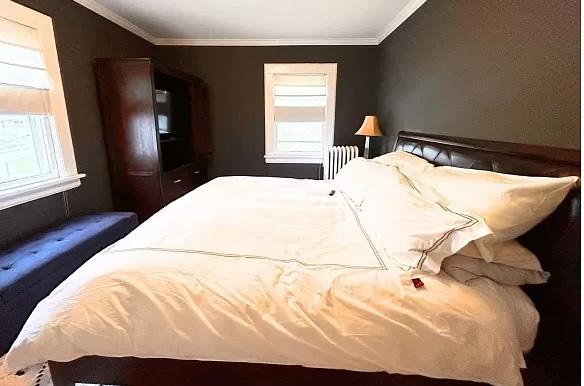 The main house boasts 5 bedrooms and 3.5 baths, including a master suite with a sitting room, walk-in closet, and renovated master bath with a skylight, soaking tub, and walk-in shower. Additional features include refinished hardwood floors, crown moldings, multiple fireplaces, and Anderson windows.