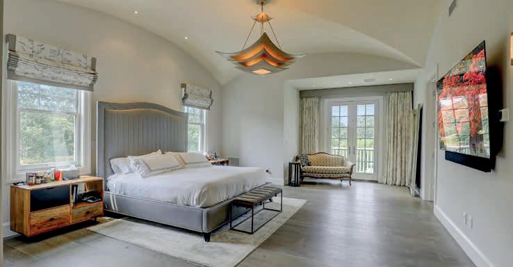 The second floor has raised panel wood treatments on the stairwell walls, a guest bedroom with a private deck, and a children’s area with two bedrooms and a shared, large bathroom with radiant floor heating. Every bathroom has a jacuzzi tub and a towel warmer.