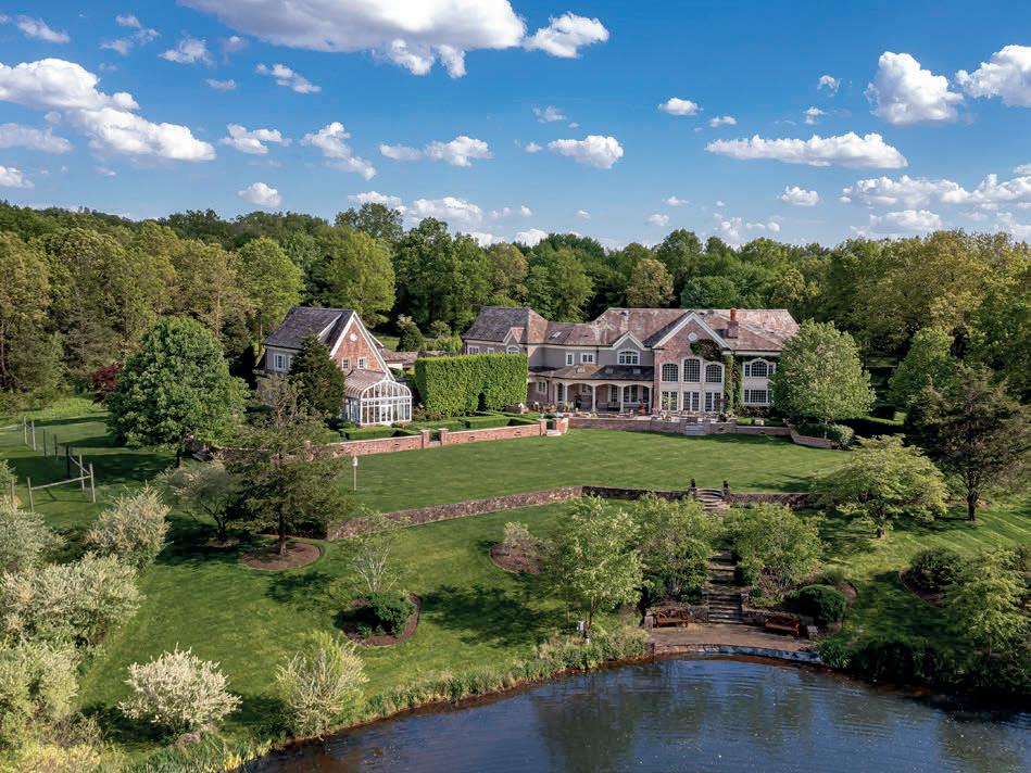 McMurtry Farm is a magnificent 217-acre estate property in Bedminster’s famed horse country. This unique offering is held in 6 parcels and includes the custom 15,000+/- sf manor house spanning 3-levels, a separate one-bedroom apartment, beautiful climatecontrolled greenhouse, stone patios, brick walls, pond with waterfall, tennis court, and extensive gardens. Brick, limestone and a slate roof envelop the residence sited majestically at the end of an extraordinary mile-long picturesque drive through acres of rolling fields and woodlands. Custom architectural details abound from the raised panel wainscot, crown molding and intricate millwork to the 2-story cherrypaneled library and 1st-floor media room. In the foyer, a curved floating staircase to the upper and lower levels is dramatically eye-catching. Beautifully scaled, finely detailed rooms feature hardwood and stone floors, high ceilings, French doors, and four fireplaces. All bedrooms