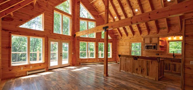 Lot 94 lodge features vaulted ceilings, handcrafted cabinetry, wooden flooring, counters and shelving, plus all amenities: Township sewage, well water, electricity, heat, metal roof, full bathroom and kitchenette!