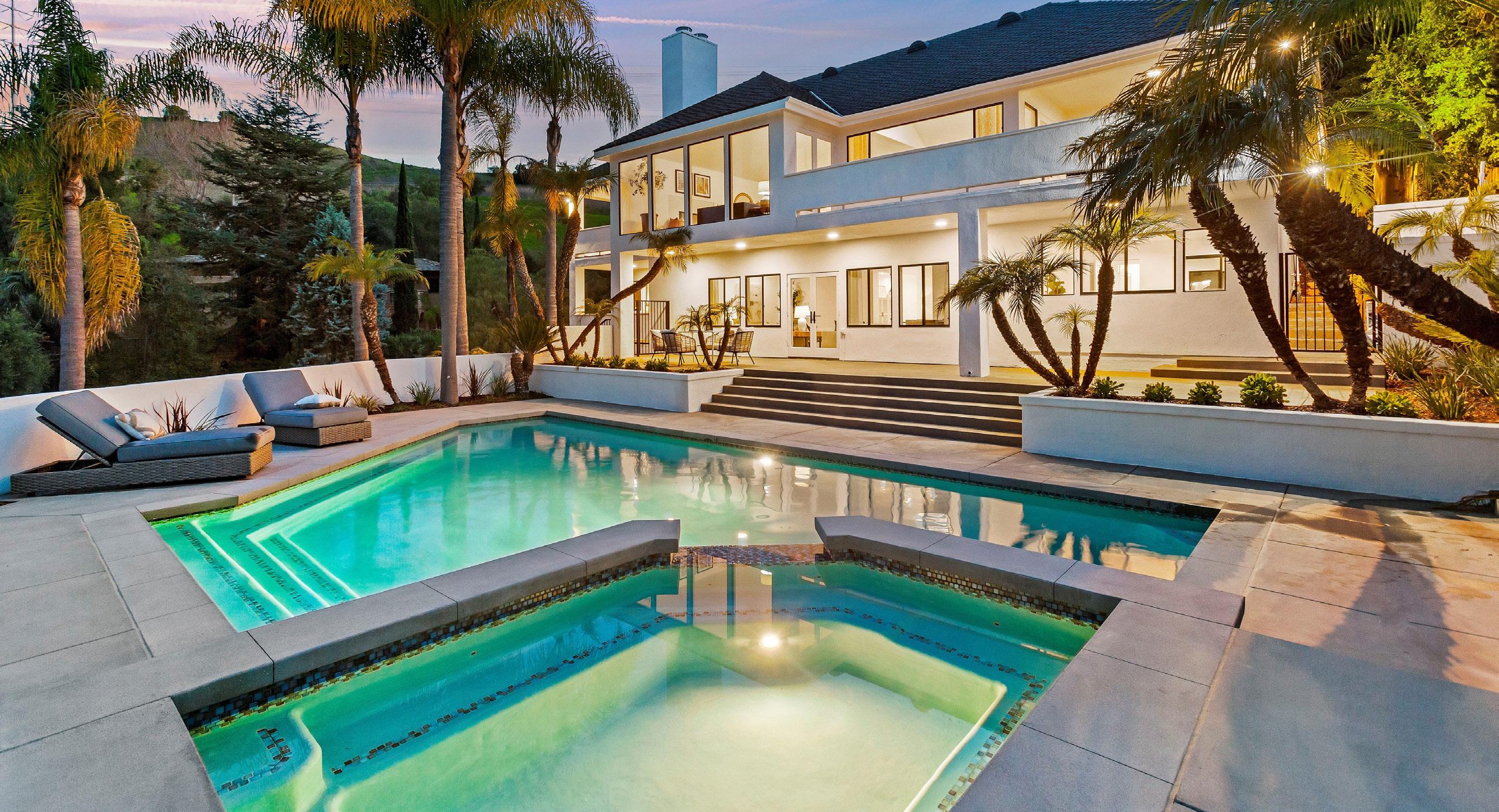 Welcome to this stunning 6-bedroom, 4.5-bath, 5,213 SF home located in the highly desirable and seldom available equestrian neighborhood of Hidden Valley in San Juan Capistrano. With just 20 custom homes behind its gate, Hidden Valley is a gem. Perched atop a hill on a cul-de-sac, this fully refinished property offers the ultimate in privacy and seclusion while providing breathtaking views. Outside, enjoy the view of your large backyard oasis, where you’ll find a sparkling pool and sports court that’s surrounded by lush landscaping with plenty of space for play. The main floor features the luxurious master suite, complete with a walk-in closet and spa-like bathroom with a soaking tub, dual vanities, and large shower with rain head. The main floor has a separate bedroom with ensuite bathroom and outdoor access perfect for an office or in-law/teen suite. This room has direct access to the backyard pool area, making it the ideal spot for summer parties and gatherings. With two full bathrooms downstairs, the layout is setup for a large family or multigenerational living. In addition to its many other amenities, this home features a 3-car detached garage, with large storage attic and wall of cabinets, providing plenty of space for your vehicles and storage. There is also ample driveway parking available. Situated on a large .74-acre lot in this equestrian zoned neighborhood, you’ll have access to the community’s extensive equestrian trails and open space. This is the perfect home for those seeking peace and quiet of living in a community surrounded by nature, expansive views, but within a few minutes of all the commercial amenities and beaches of South Orange County.
