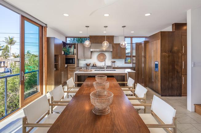 This sleek and contemporary architectural gem is adorned with walls of glass, abundant natural light and offers breathtaking ocean views from various vantage points. This estate was built to entertain with an open floorplan and optimizing indoor/outdoor living for the quintessential California lifestyle. Chef’s kitchen has been beautifully renovated to combine functionality with sophistication, and provides an ideal space for both culinary artistry and casual dining experiences.