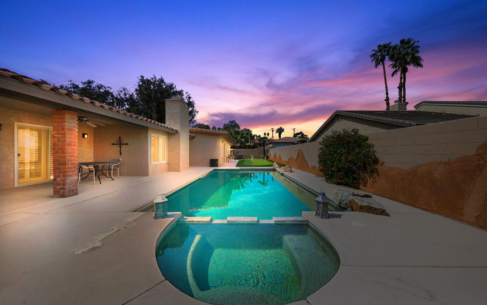 1962 Mid-Century Fixer on a sweeping end lot with golf course and mountain views. Prime South Palm Springs location tucked along the Tahquitz Creek Golf Course. Sold in “As-Is” condition, this expanded 3BR/2BA includes a relaxing front patio, formal entry/sitting area with large picture window to enjoy the views, dual sided vintage block fireplace complementing the Dining Room and Living Room with vaulted ceilings and another large picture window showcasing more views, vintage built-ins, lots of closet/storage space, ceiling fans and French Doors throughout. Kitchen offers tons of cabinetry and counter space, gas stove, and adjacent Breakfast Area with direct access to pool. Expansive Primary Suite enjoys its own private ‘’wing’’ nicely situated away from the Guest Bedrooms and Bath. Primary Suite offers a generous closet, spa tub, dual sinks, walk-in shower, and access to outside. Ultra Private backyard with pool, two covered