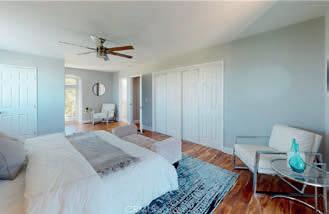 to the majestic great room with beautiful mahogany laminate wood flooring, designer beveled glass windows that compliment the grand formal dining room that used to be the 4th bedroom. The custom lighting is magnificent. There is an abundance of natural sunlight and all of our windows have custom coverings. Just off the formal dining room is a hallway and powder room. The chefs kitchen is open to the great room and our counter tops are a show stopper. There is a walk in pantry and tons of cabinets. Truly a magnificent kitchen. The bathroom next to the slider leading out to the pool has a walk in shower and a must see with it’s designer touches. Travel down the 2nd hallway and you will find the 3rd guest bedroom with built in shelves perfect for a home office. The 2nd master has it’s own walk in shower. The giant master suite has it’s own soaking spa tub! The master bathroom has 2 vanities and a walk in shower. The designer color scheme is rich and inviting. Recessed lighting adds a soft touch and check out our giant walk in closet. So many up-grades to list. Just down the way from Villa Park we are located close tot he 55, 57, & 22 fwys. Come on over and stay awhile and enjoy all that this exceptional home has to offer! Must see.
