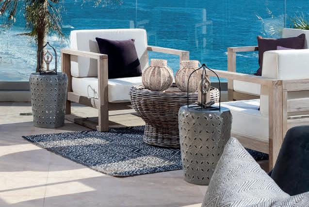 One easy way to create a beachy vacation environment in your home is by adding furniture pieces to your indoor and outdoor spaces that burst with tropical color. Tropical colors are typically bright shades of blue, yellow, and green. Also, colors such as turquoise, canary yellow, aqua, and emerald can infuse your space with a resort-like ambiance. Consider adding throw pillows or even painting walls in these colors to provide the perfect vacation vibe.